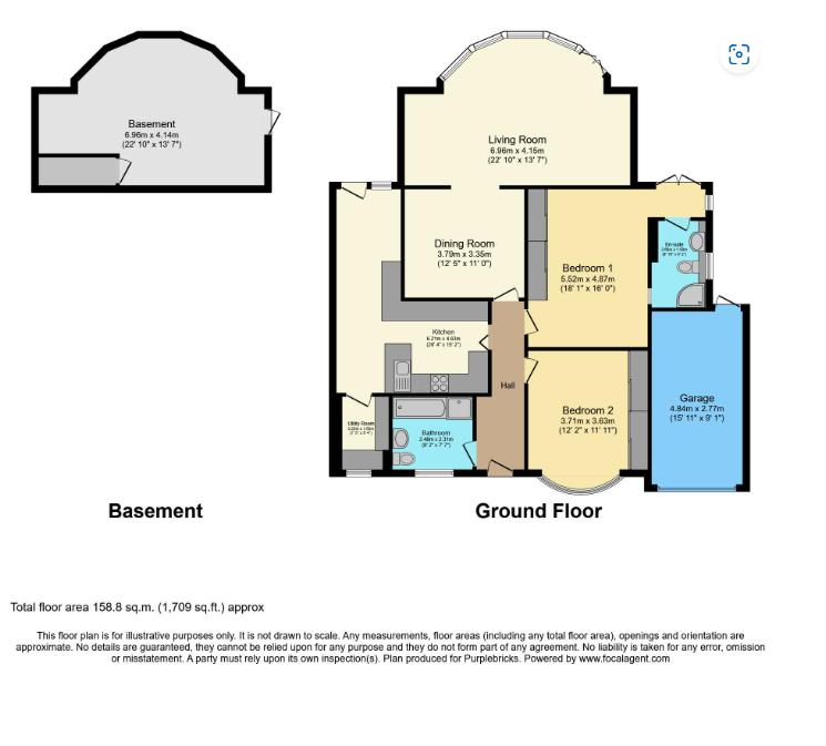 A beautifully presented and extremely large 2 bedroom detached bungalow. The spacious property is set in a quiet road close to Cuffley village shops, station, and local school. The accommodation consists of: Kitchen/breakfast room which incorporates a study area, utility room, bathroom, living room, dining room, master bedroom with seating area and en-suite shower room, guest bedroom. There is large patio with a raised seating area, stunning mature rear garden which is in excess of 100feet, countryside views, basement currently used as a work room, driveway with off street parking. The property offers much scope to re-develop by extending or adding a loft conversion stpp. CHAIN FREE.
