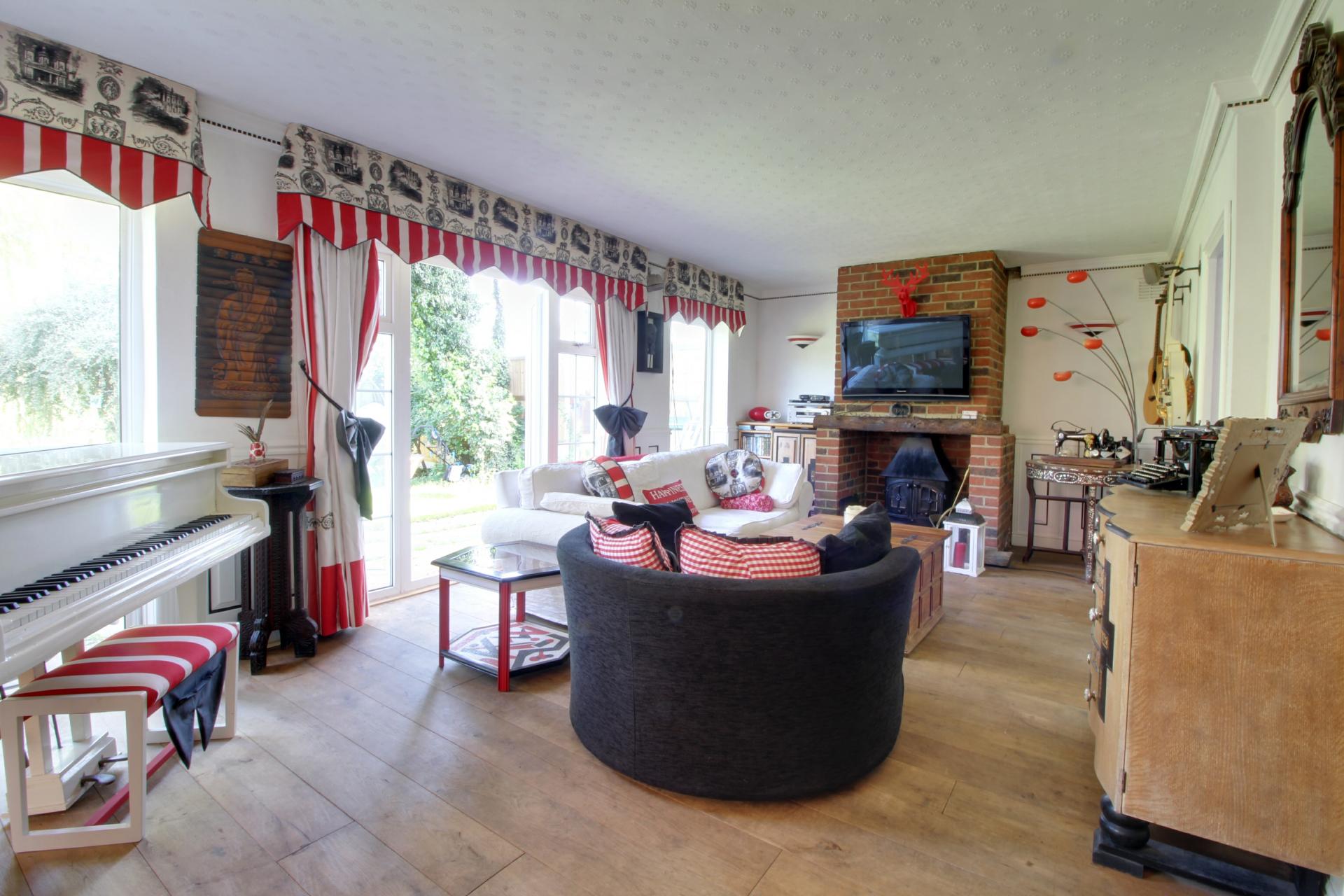 **CHAIN FREE**HUGELY VERSATILE**5 BEDROOMS**3 BATHROOMS**LARGE REAR GARDEN**CLOSE TO SHOPS AND STATION**IN EXCESS OF 2000 SQ FT** 4 ROOMS ON THE BASEMENT LEVEL**LARGE MATURE GARDEN** An extremely versatile and spacious 5 bedroom family property which also benefits from 3 reception rooms and 3 bathrooms. The accommodation comprises: entrance hallway, 2 bedrooms, study, bathroom, kitchen/dining room, stairs down to the lower ground floor which has a living room, bedroom/reception room and sun room, there is also a utility room and cloakroom. On the top floor you will find 2 bedrooms both with en-suite shower rooms. Large mature rear garden, garage and off street parking from several cars. Walking distance to village shops and train station.