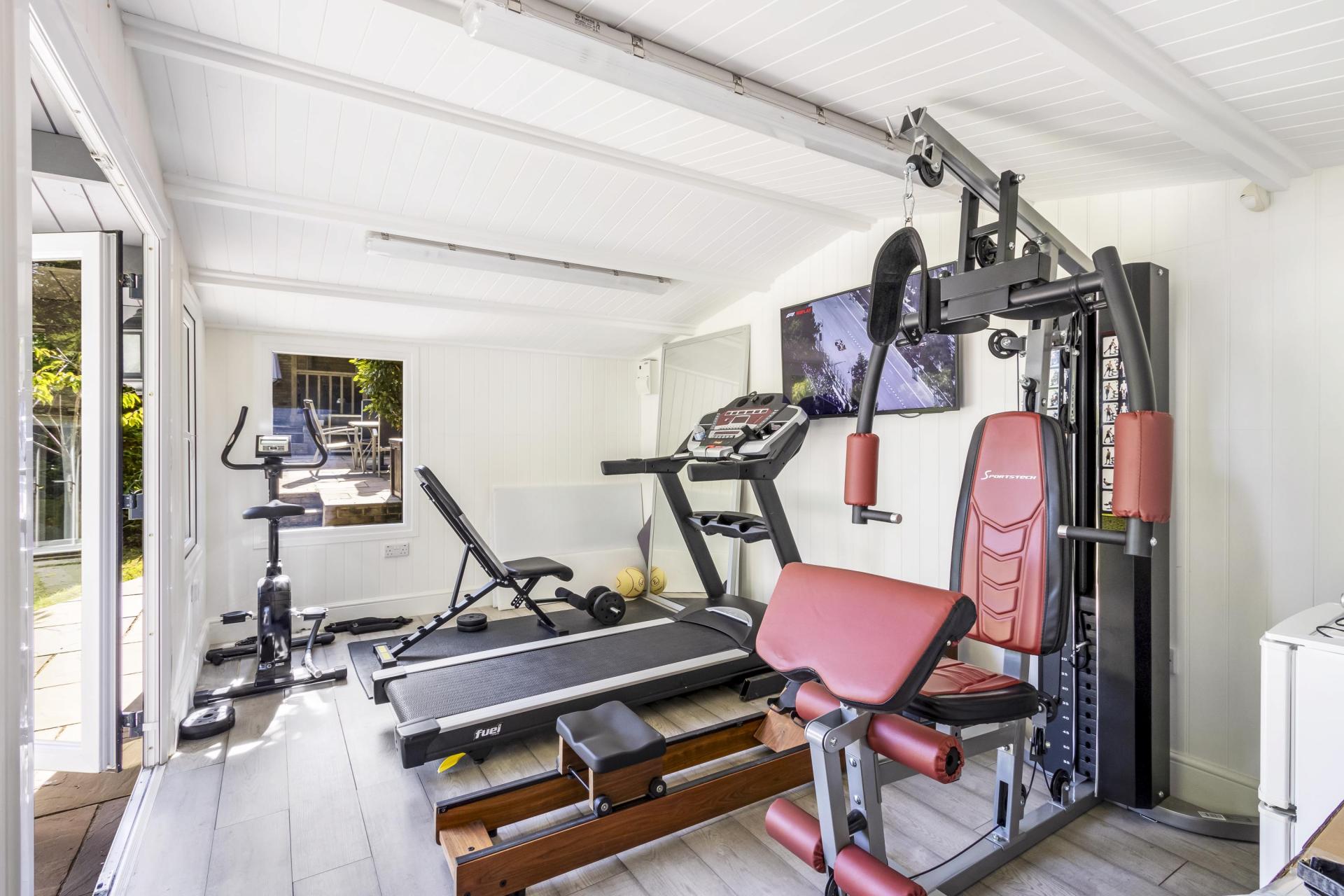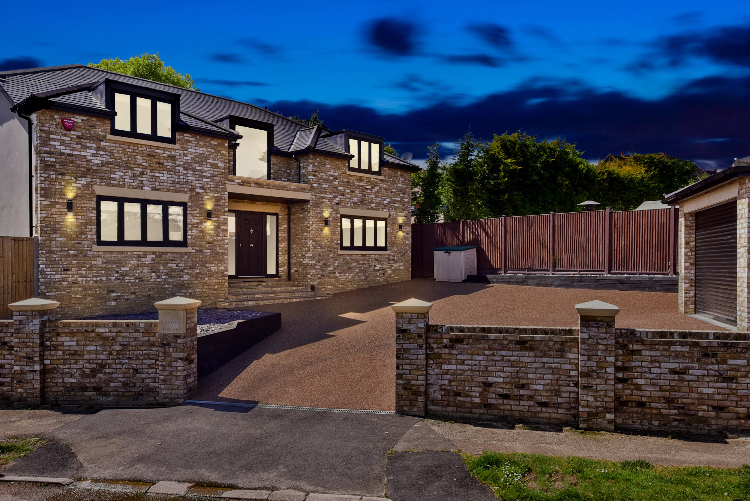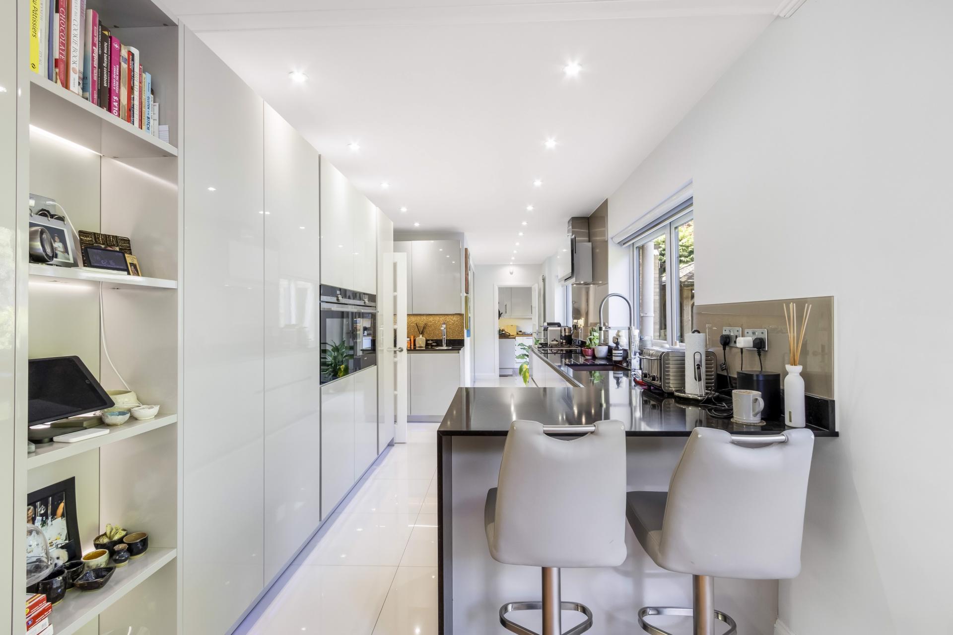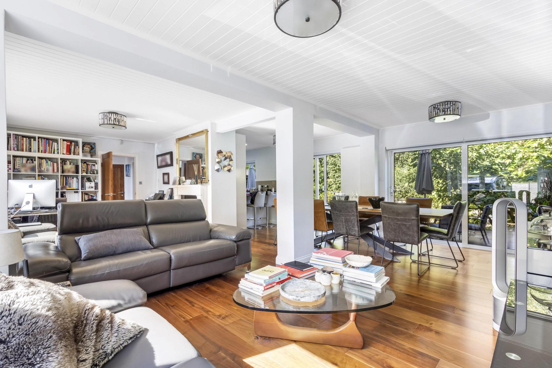 A beautifully presented 4 bedroom open plan home which has been modernised and maintained to an exemplary standard throughout. The wonderful home sits in a unique position backing directly onto woods with its own access. There are several high end features including a gym and professionally installed high end home cinema with a multiple speaker and subwoofer system and laser projection all programmed and controlled via an iPad Pro. The ground floor has automated Silent glass motorised blinds and Rako lighting system, there is a bespoke German kitchen made by Schüller which offers both a gas and induction hob, also it offers a large utility room which also doubles up as a chef's kitchen. The property has Walnut floors throughout, with a thick pile carpet in the cinema room which can also be used as bedroom 5. Both the garden and front drive also have an automated lighting system whereby the lighting comes on at dusk and can be programmed to go off at the time of choice. A large carriage driveway with parking for several cars.