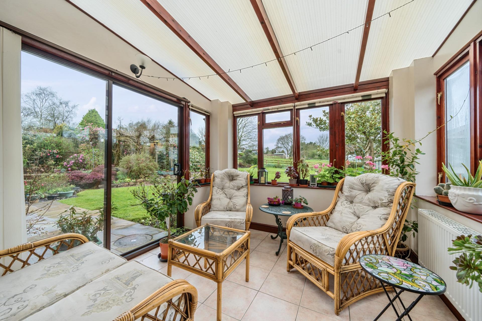 The garden is west-facing and has wonderful views over the open countryside. There is a private patio area easily accessed from the Kitchen, large lawn with shrub and flower beds, raised beds, greenhouse and two sheds. To the front is parking for several cars, lawn and shrub boarders accessed through a five bar gate. There is a double garage with single electric door, floor mounted oil boiler and access to roof storage. Private Drainage