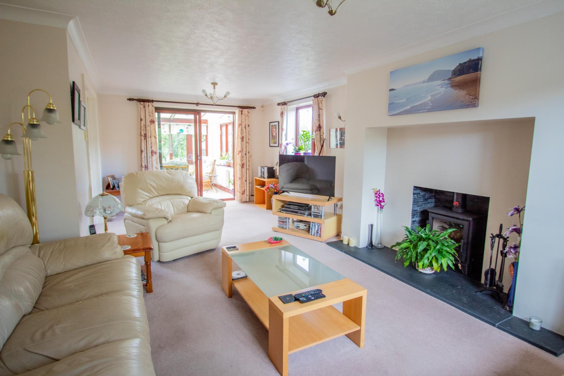 The accommodation is spacious and very well presented. Downstairs, it offers a light, bright hallway with a cloakroom and access to the dual-aspect living room with patio doors leading into the conservatory, and a wood-burning stove set in the fireplace. There is a separate dining room and study, ideal for working from home, a large fully fitted kitchen/breakfast room with induction hob, double oven and space for a dishwasher. From the breakfast room are patio doors leading to the garden. A door into the fitted utility room with space for a washing machine and tumble dryer. Doors lead into the double garage and out to the garden.