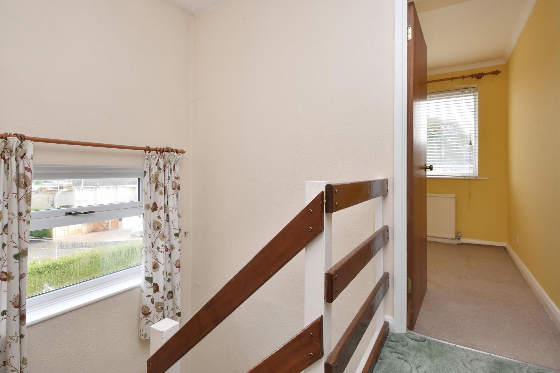 Landing with access to loft, returning staircase lit by flank window.