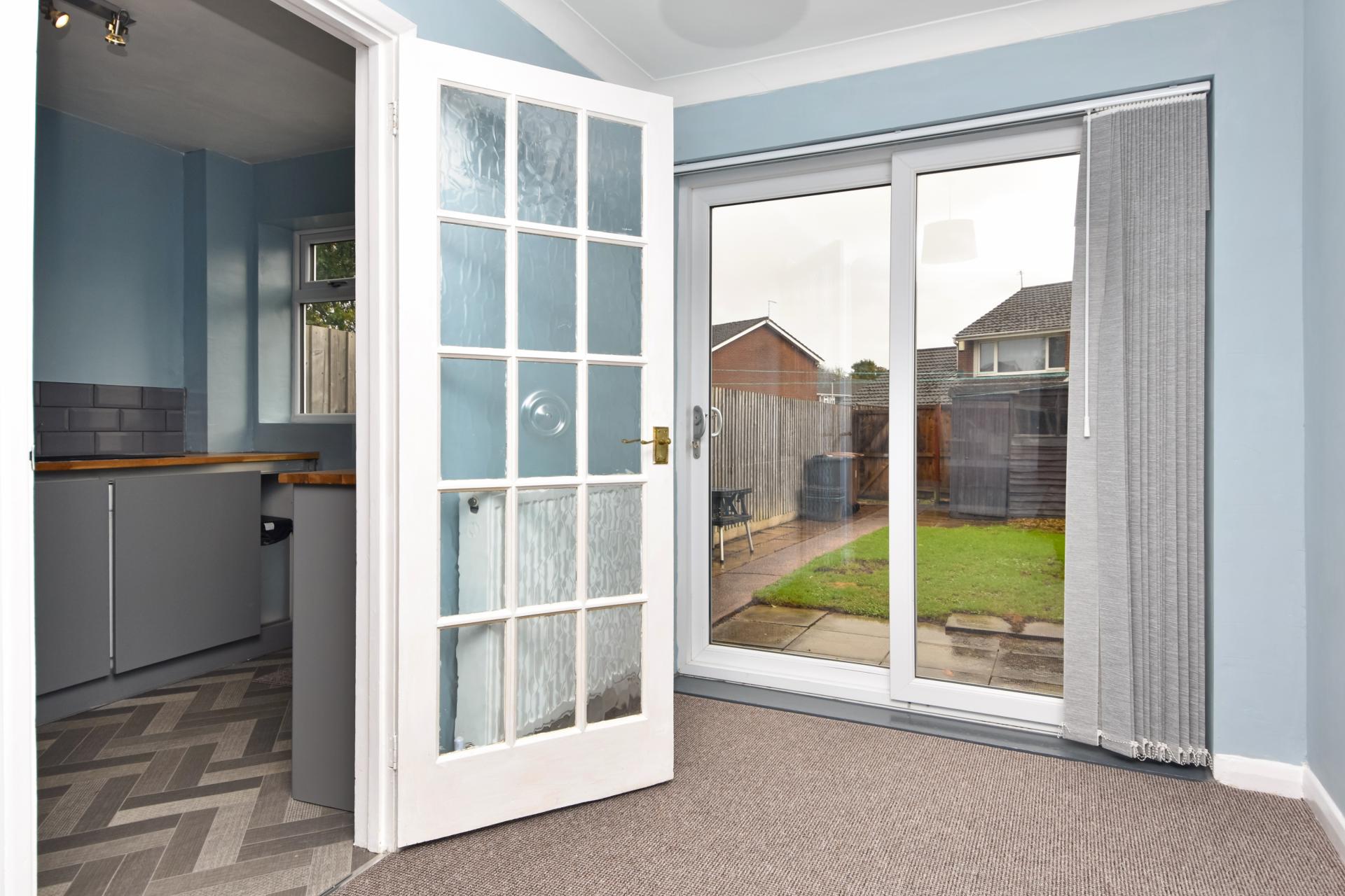 Sitting/Dining Room a lovely spacious “through” room with large picture window overlooking the front, sliding patio doors to rear, radiator, access to understairs storage cupboard with shelving, newly carpeted and decorated.