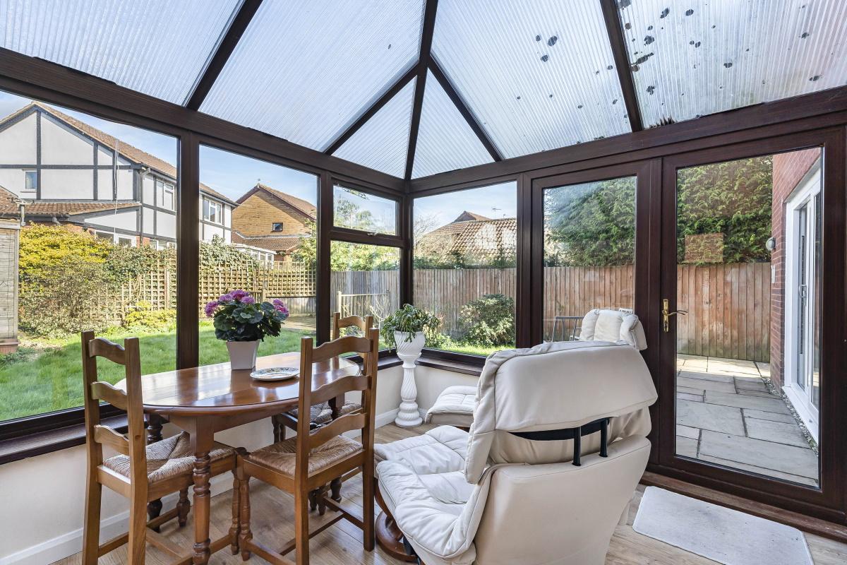 Conservatory of dwarf wall and UPVC construction, a lovely extra summer Sitting and Dining Room, French doors to rear garden.