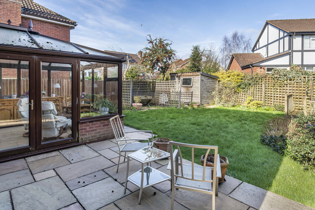 The property benefits from a large resin driveway, providing parking for at least three vehicles, with the rest of the front garden predominantly laid to lawn, with some established shrub borders and specimen tree. The driveway leads to the Single Garage with electric roller door, both light and power, providing excellent storage. Gated pedestrian access is provided down both sides of the property and leads to the rear garden, which is surprisingly generous in size and provides a substantial area of patio, ideal for alfresco dining and entertaining, whilst the rest of the garden is predominantly laid to lawn with established shrub borders. A further area of decking providing another lovely sunny seating area and a Timber Garden Shed. The whole garden is fully enclosed by perimeter fencing, creating a safe environment for both children and pets. N.B. The property currently has spray foam in the loft. This is in the process of being removed.