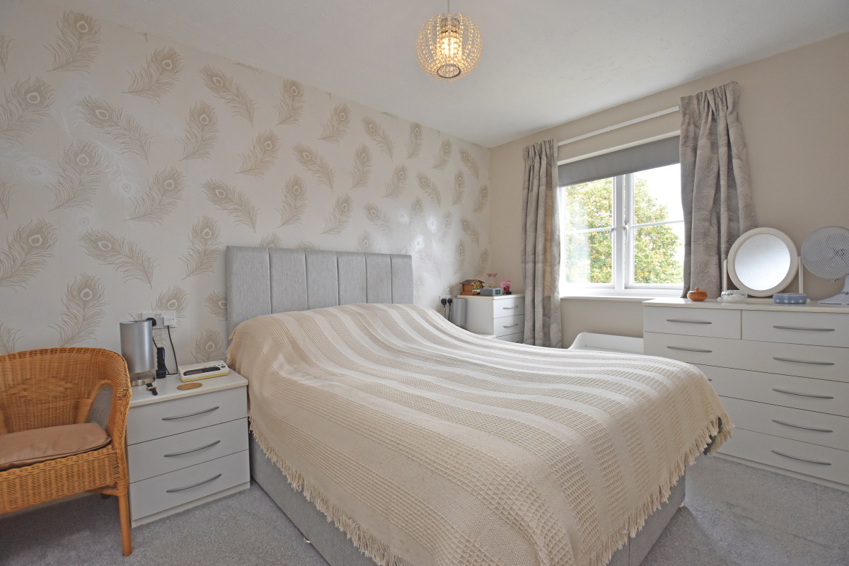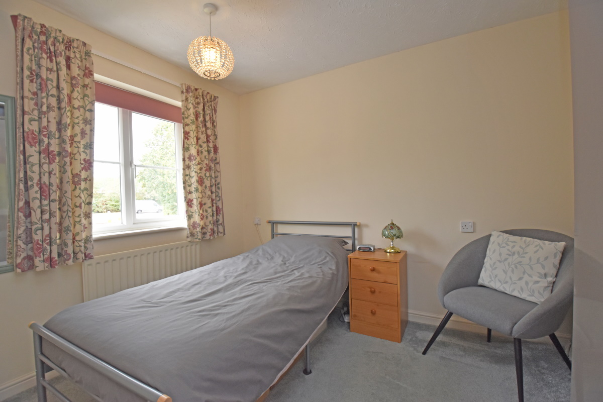 Bedroom 1 an excellent double room, radiator, deep recess ideal for wardrobes, pleasant outlook over rooftops to distant Blackdown Hills.