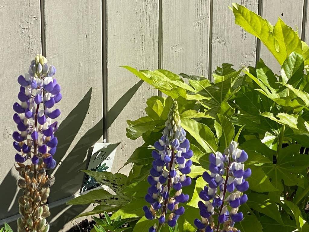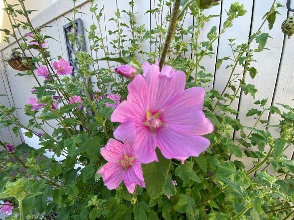 Large paved patio area to rear with flower borders and is enclosed by fence and gates.