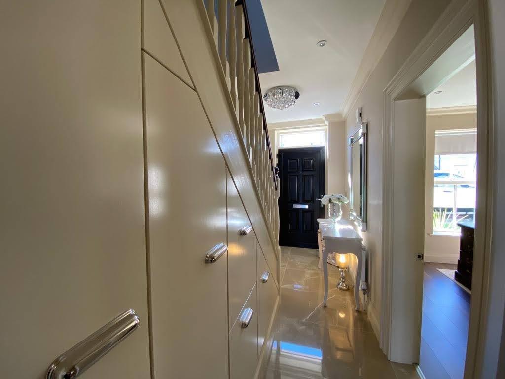 Having ceiling cornicing, recessed lighting, bespoke understairs storage, porcelain tiled floor.