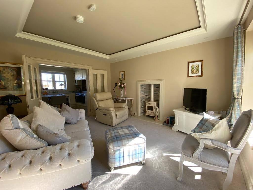 4.42m x 3.96m (14'6" x 13') - Having multi-fuel stove set in tiled surround with stone hearth, feature drop ceiling with recessed lighting, double doors to Kitchen.