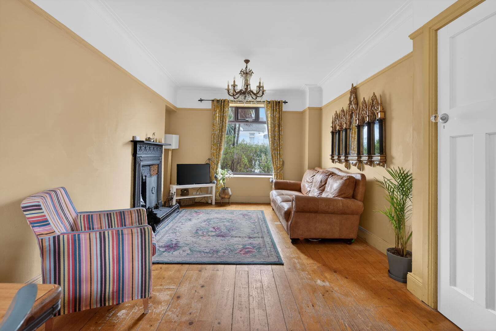 Lounge/Dining: - (6.83m x 3.71m) - Hard wood flooring, cornice detailed bordering, feature central open fire, outlook to front and rear.