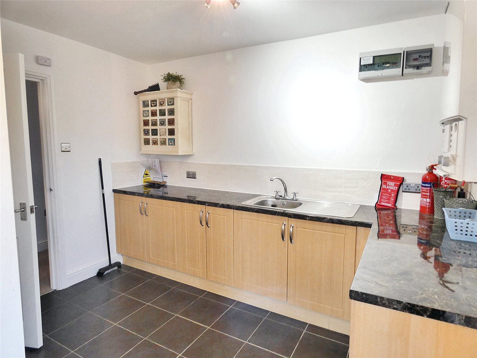 Rear Entrance L shaped rear entrance hall. Tiled floor. Good range of base units. Stainless steel sink. Marble effect worktop. Tiled splashback. Worcester gas boiler. Radiator. Window & door to rear of the property.