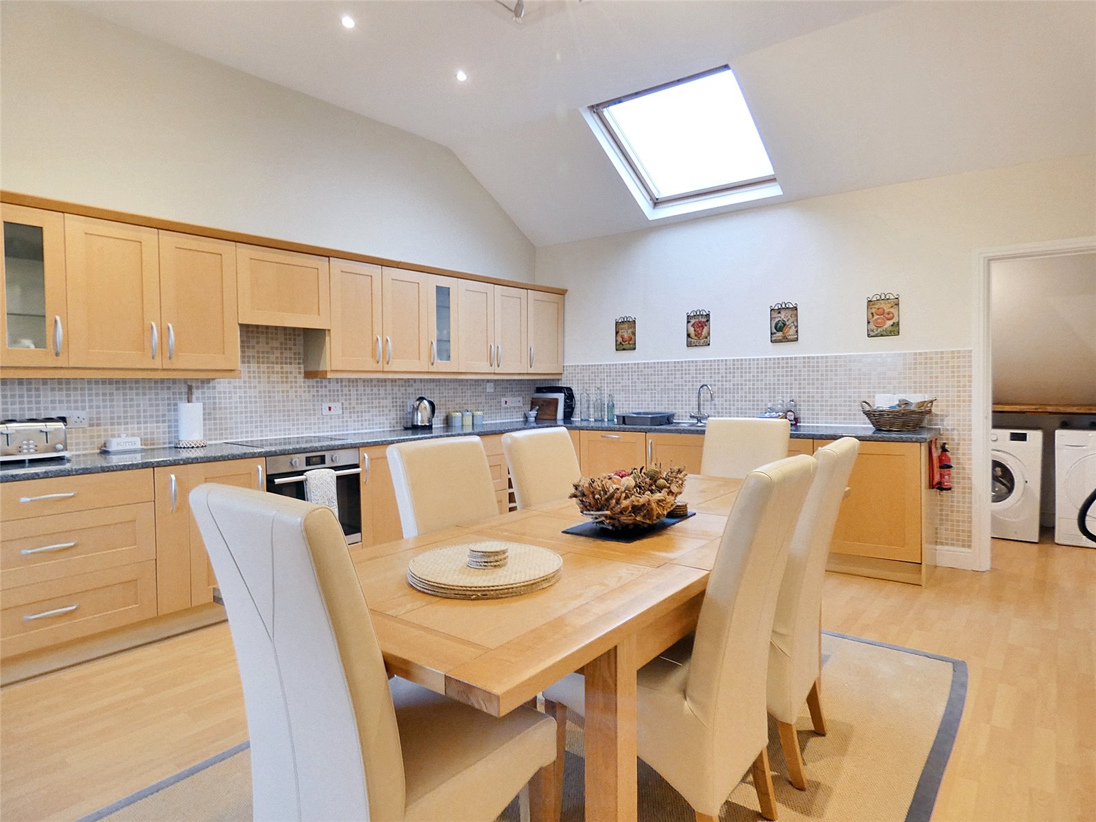 Kitchen Diner Large kitchen diner. Laminate flooring. Spotlights. Good range of wall and base units. One and a half stainless steel sink. Integrated appliances - dishwasher, fridge, freezer, oven & hob. Velux window to the rear & large window to front of the property.