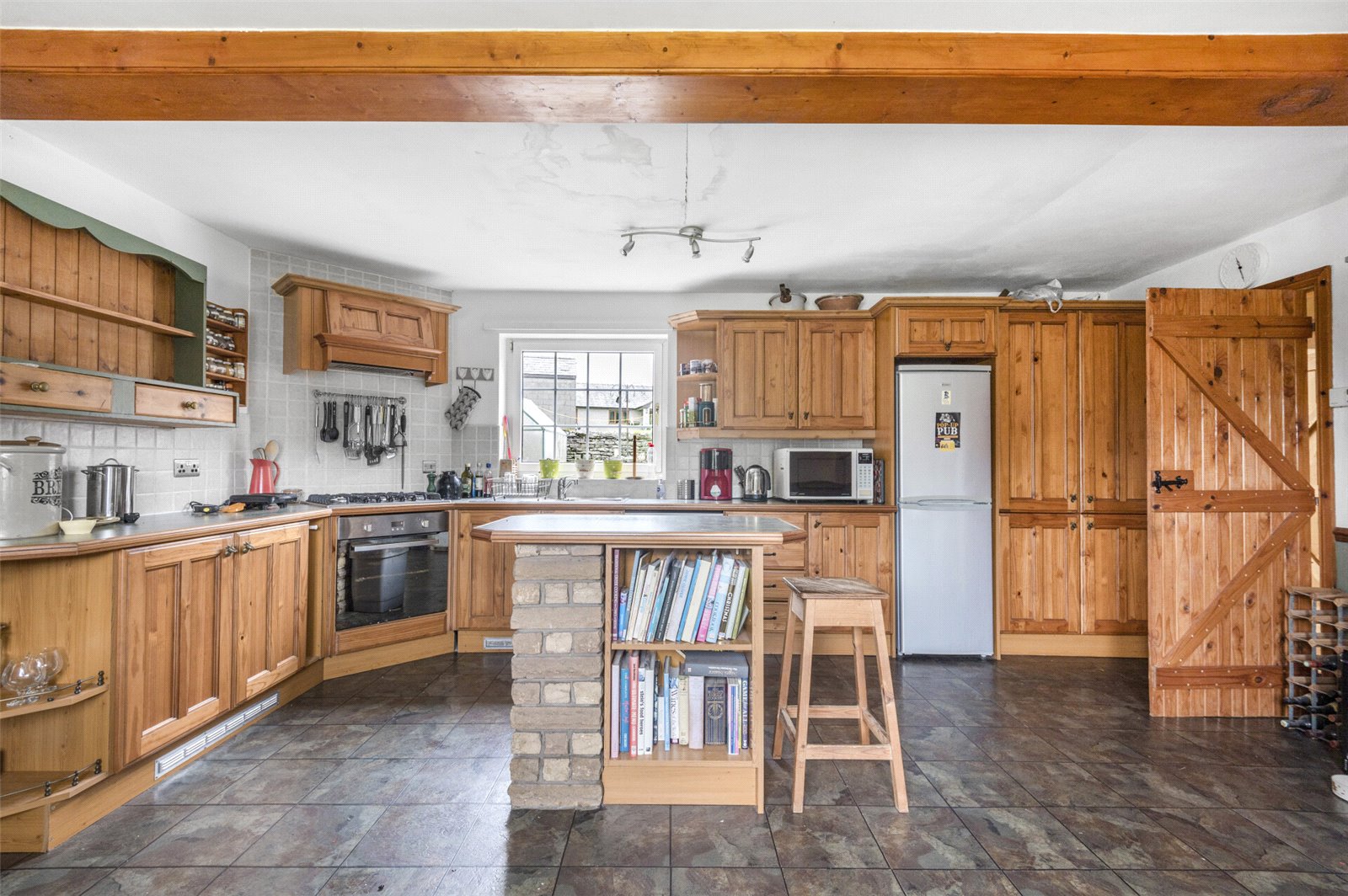 Kitchen Spacious kitchen diner. Tiled flooring. Exposed beam. Dado rail. Good range of wooden wall and base units. Kitchen island with storage. Single stainless steel sink and drainer. Integrated oven and gas hob with extractor hood. Space for fridge freezer. Plumbing for dishwasher. TV point. Radiator. Two windows over dual aspects.