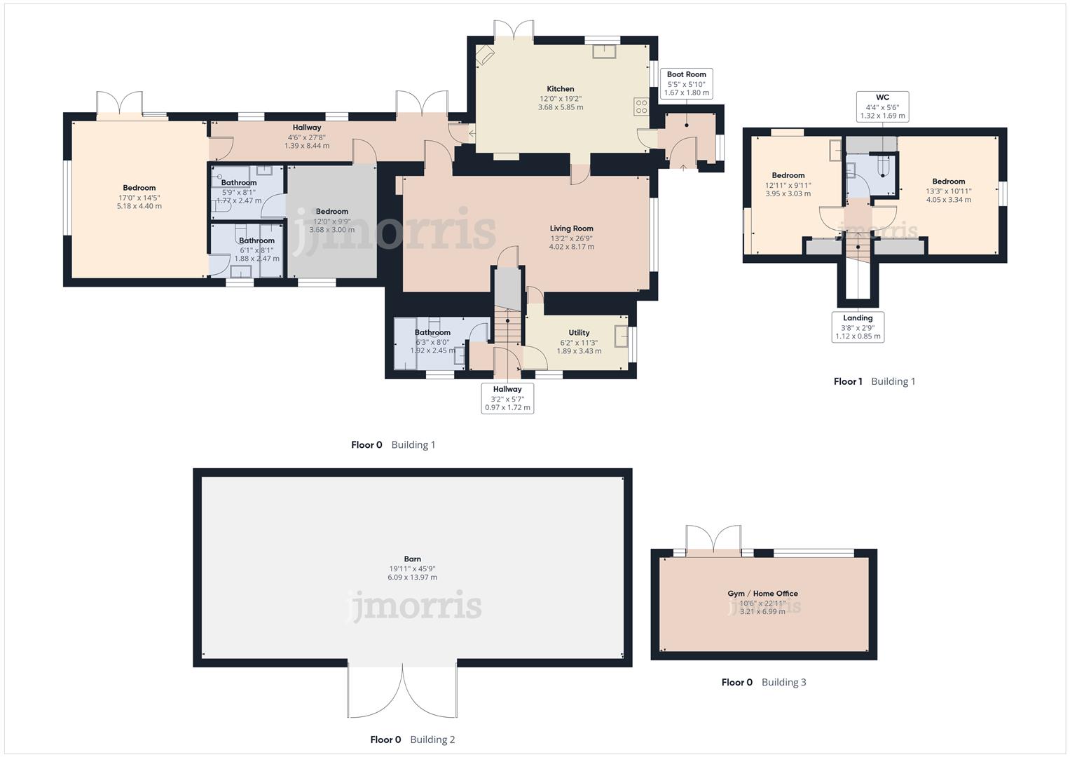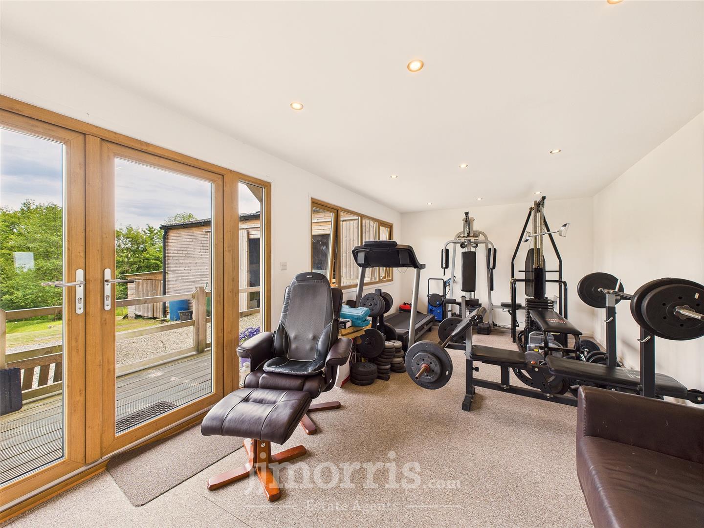 Outbuildings - The property includes a versatile collection of outbuildings, offering excellent potential for a variety of uses. A substantial detached barn measuring approximately 13.97 x 6.09 , features large sliding wooden doors, concrete flooring, and is fully equipped with power and lighting. A separate insulated and soundproofed studio 6.99m x 3.21m, currently functioning as a home gym and office, also benefits from power, lighting, WiFi connectivity, and includes a covered outdoor decking area, adjacent shed, wood storage, and a greenhouse. Additionally, there are two stables-each with stable doors, windows, power, and lighting-measuring approximately 3.56m x 3.53m and 3.68m x 3.5m respectively.
