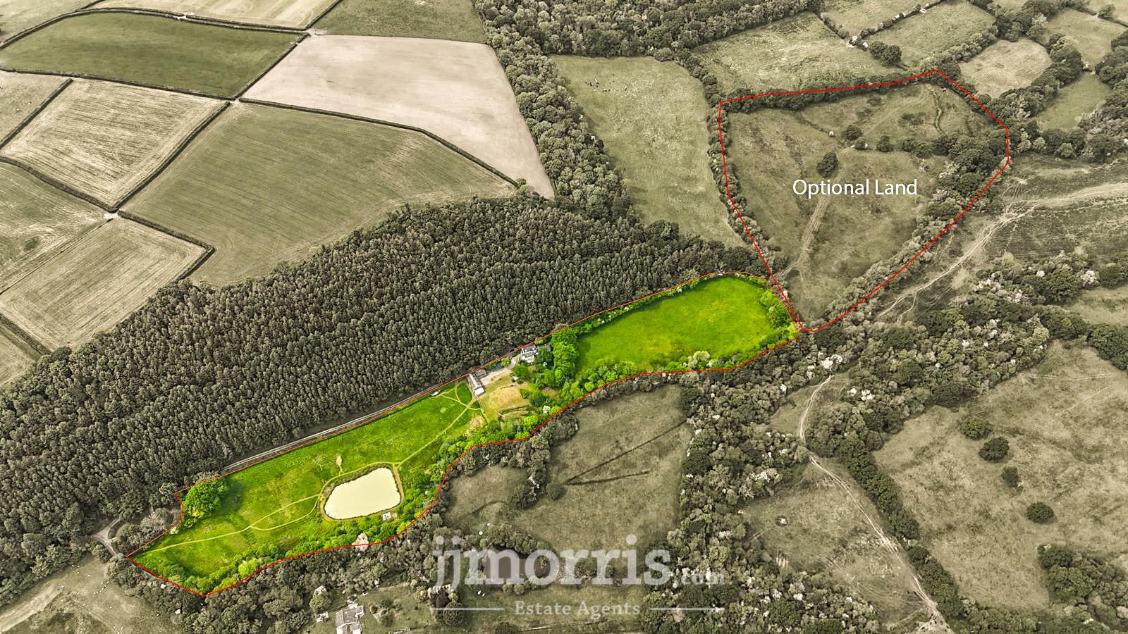 The Land - This property encompasses 19 acres of land sold as 9 with the option to purchase an additional 10, featuring three fields. The first, a 5-acre field adjacent to the driveway, which offers three gated access points and is ideal for various uses. It includes a well-stocked fishing lake (registered fishery) with a patio area, alongside a summer/fishing hut, bordering woodland and a stream. Continuing along the drive via gated access, you'll find a securely fenced 4-acre field. The remaining land is located at the end of a track via a bridleway, where you'll discover a gently sloping 10-acre field. All the land is fully fenced.