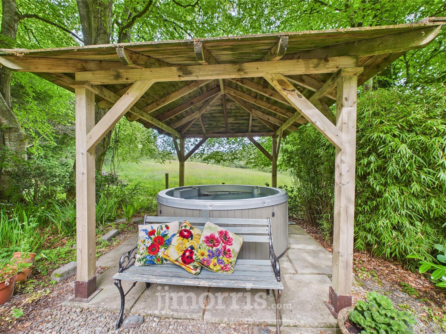 The Garden - This stunning property features exquisite gardens, primarily located at the rear, showcasing a serene wildlife pond complete with a charming bridge leading to a central seating area. You'll find a variety of mature trees and well-established shrubs, while gated access opens up to a beautiful strip of woodland perfect for leisurely walks. Additionally, a delightful raised patio at the back provides an ideal spot to relax and unwind. For added luxury, there's a hot tub nestled under a covered pergola, perfect for enjoying peaceful moments outdoors.