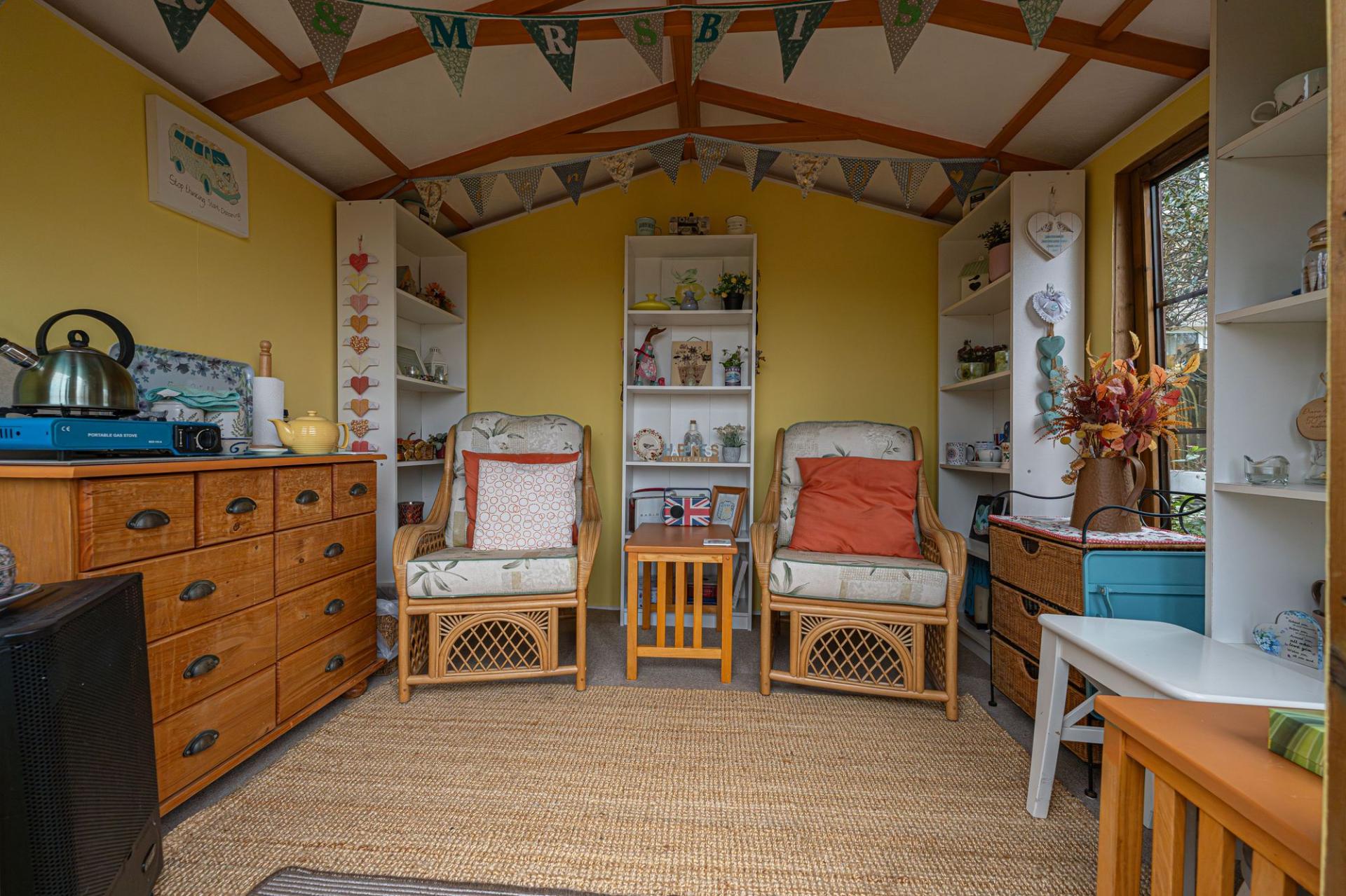 A standout feature of this flat is its exceptional outdoor areas, which is a rare luxury for a first floor apartment. Residents can enjoy a charming private garden with multiple patio areas and a pebble stone lawn. This wonderful garden plot is fully enclosed and minimally overlooked, allowing for a private retreat that is ideal for unwinding at the end of a long day, or entertaining guests over tea/coffee or dining al-fresco style. The garden also features multiple storage fixtures in a convenient outbuilding, as well as a glorious summerhouse shed that supports outdoor lounging, and potential for a home bar or other creative uses.