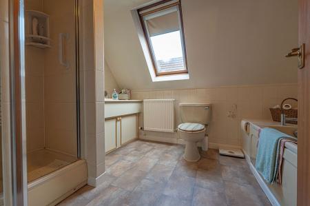 To the first floor we have the three bedrooms, all of which are generous double rooms, which all have the benefit of fitted wardrobes and cupboards for residents to enjoy optimal storage management. From the hallway we can also find two airing cupboards, and access to the family bathroom, which is equipped with a bathtub and separate shower suite.