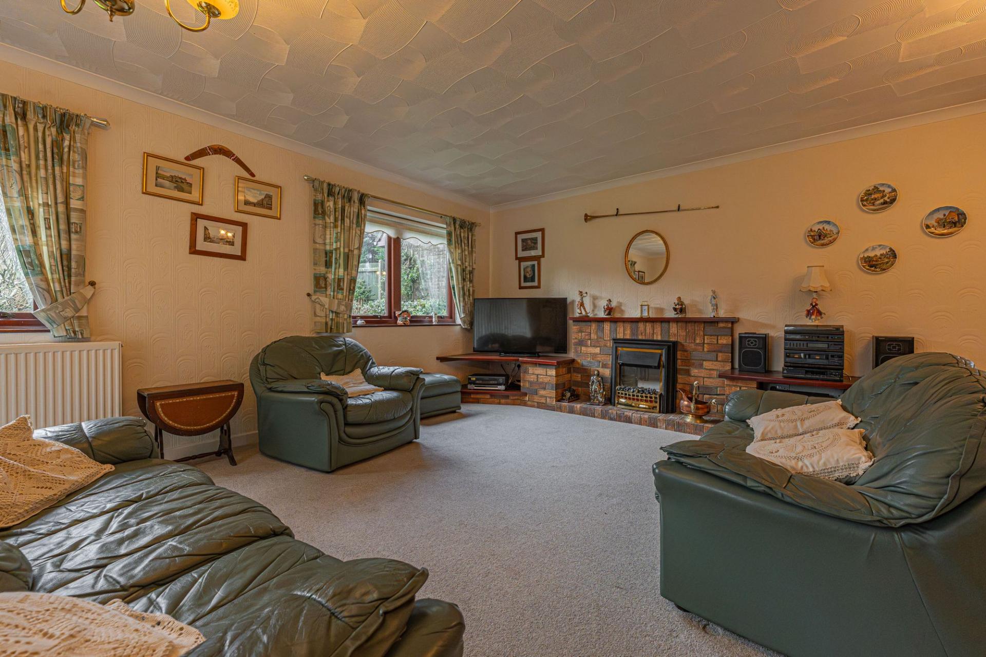 This attractive property boasts an impressive reception room at the heart of the house, with a cosy brick fireplace, ample seating, and multiple windows to flood the room with natural light. This spacious living room offers an abundance of space for relaxing and entertaining, as well as plenty of room to double up as a dining room. The neighbouring kitchen is also large enough to accommodate a dining area or breakfast nook, as well as offering ample storage cabinets and room for integrated appliances. Multiple fitted cupboards can also be found from the ground floor hallway, as well as a W.C and interior access to the marvellous garage, which offers space to park multiple vehicles, as well as facilities to support a workshop, utility space, or even a home gym.