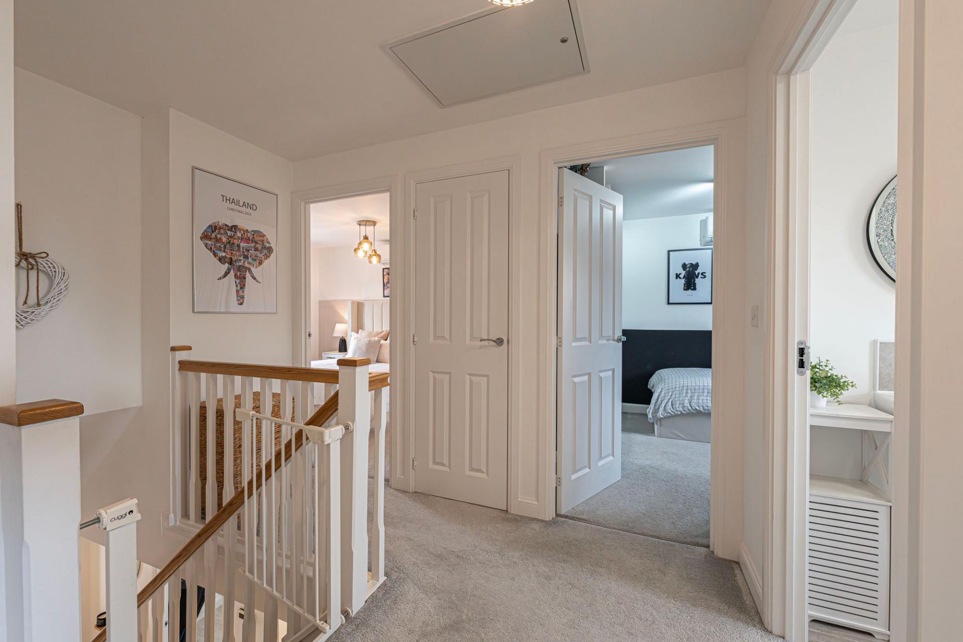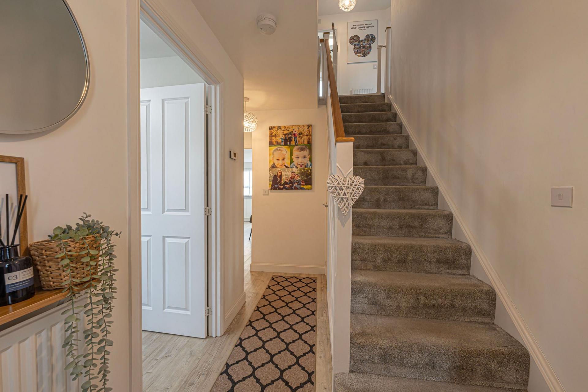 Upstairs we have four well proportioned bedrooms which are all double in size and complimented with plenty of natural light. The primary bedroom has the added benefit of a private en-suite shower room, while from the landing we can find the family bathroom, as well as a communal airing cupboard.