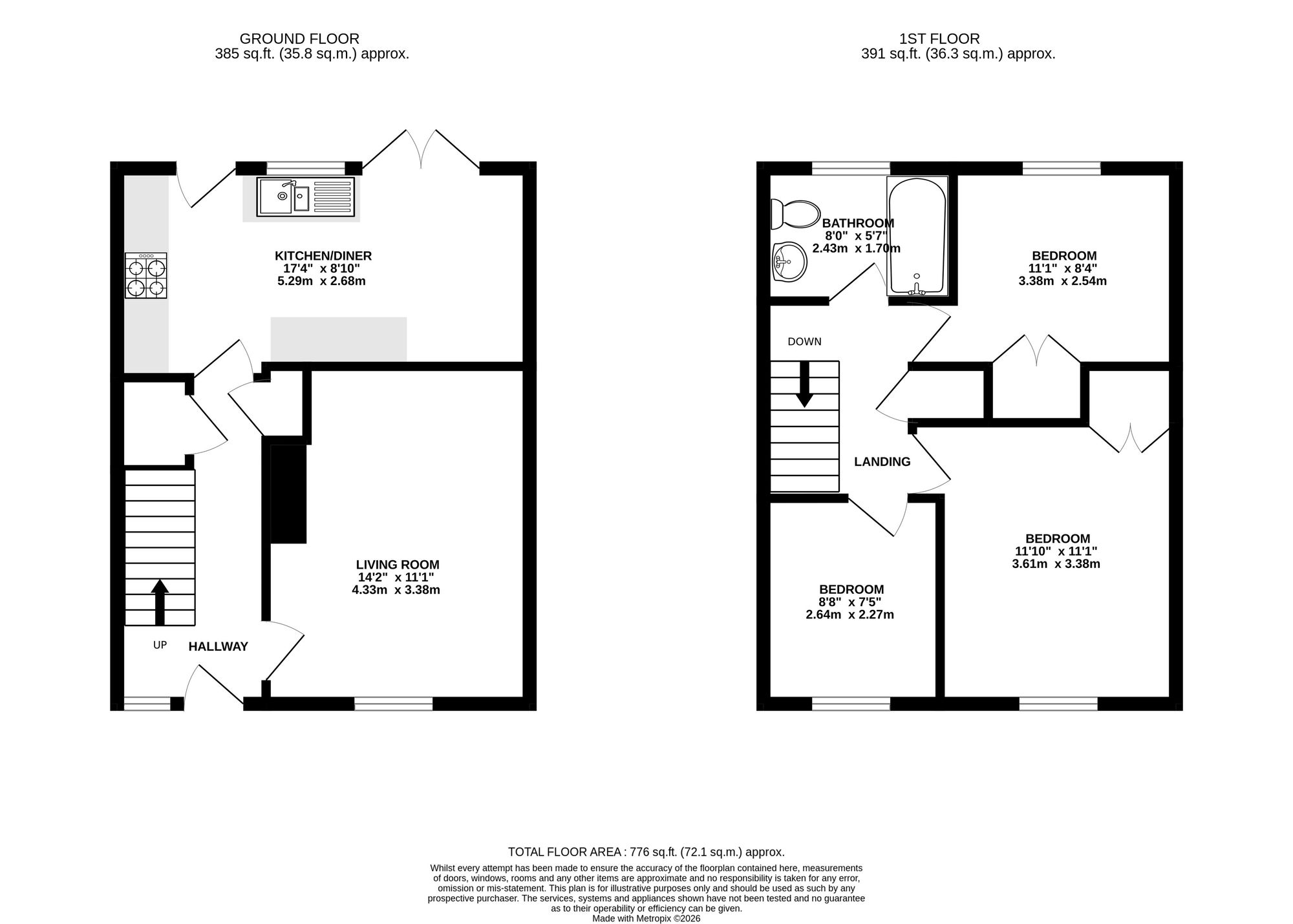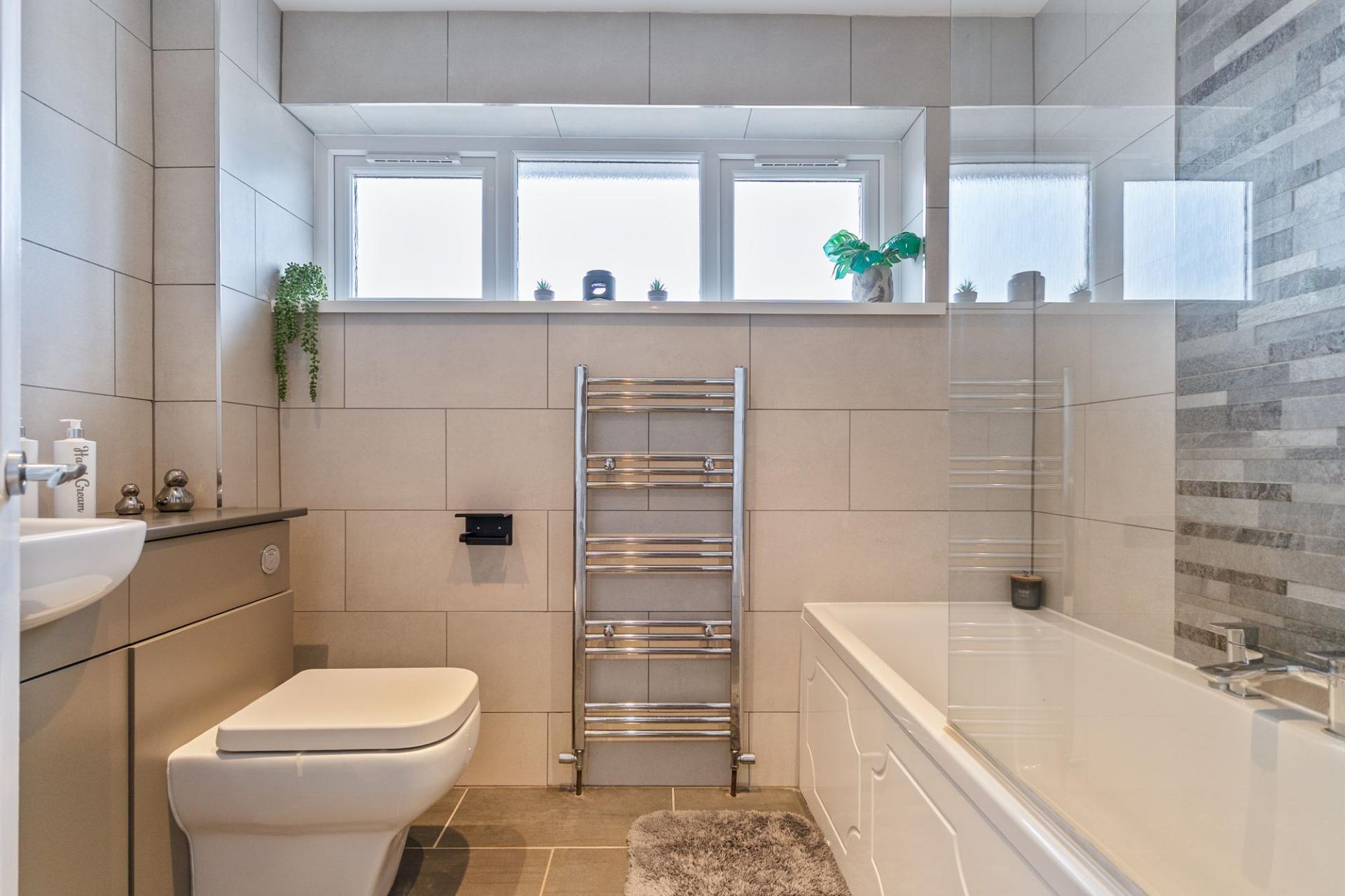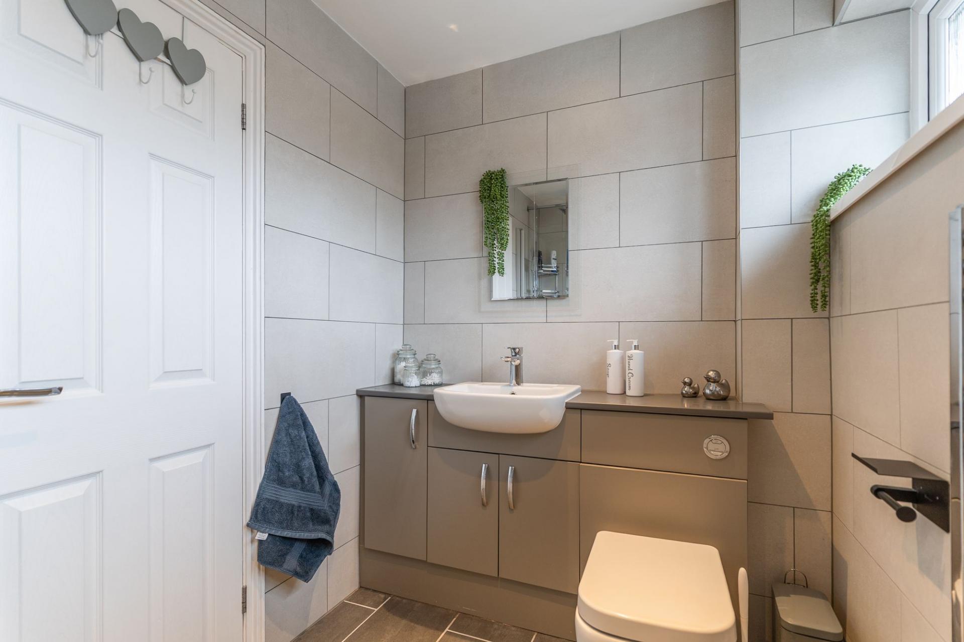 On the first floor are three bedrooms and a modern bathroom. There are two well-proportioned double bedrooms and a single room, providing flexible accommodation suitable for families, guests or a home office. The bathroom is finished to a contemporary standard and fitted with a modern suite.