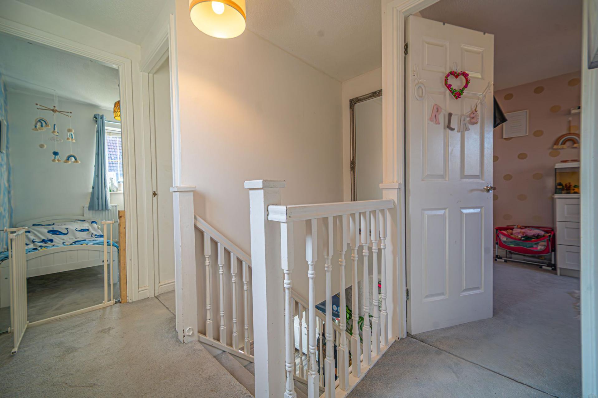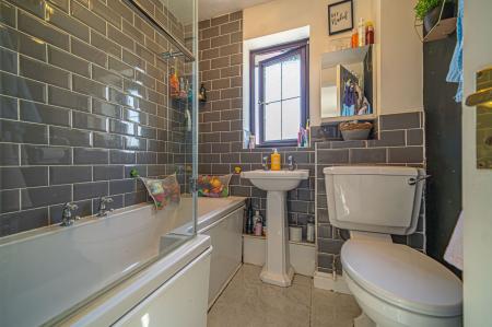 Ascending to the first floor we have the three bedrooms, two of which are well proportioned double rooms that have access to fitted storage, while the third room is a comfy single, which also has great potential to be used as a home office or dressing room. The family bathroom can be found from the hallway with a bath suite and overhead shower.