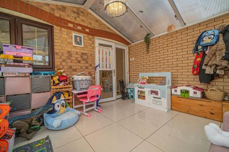 We enter this lovely property to the front, where we are welcomed into the large living room, which can suit a variety of furniture layouts and is perfect for welcoming a large host of guests. Continuing through the house we have the kitchen, which offers plenty of storage and room for appliances, with double doors that open out to the bright conservatory at the rear of the house, which could be used as a gorgeous dining room or an further living area, highlighting the great versatility the property offers.