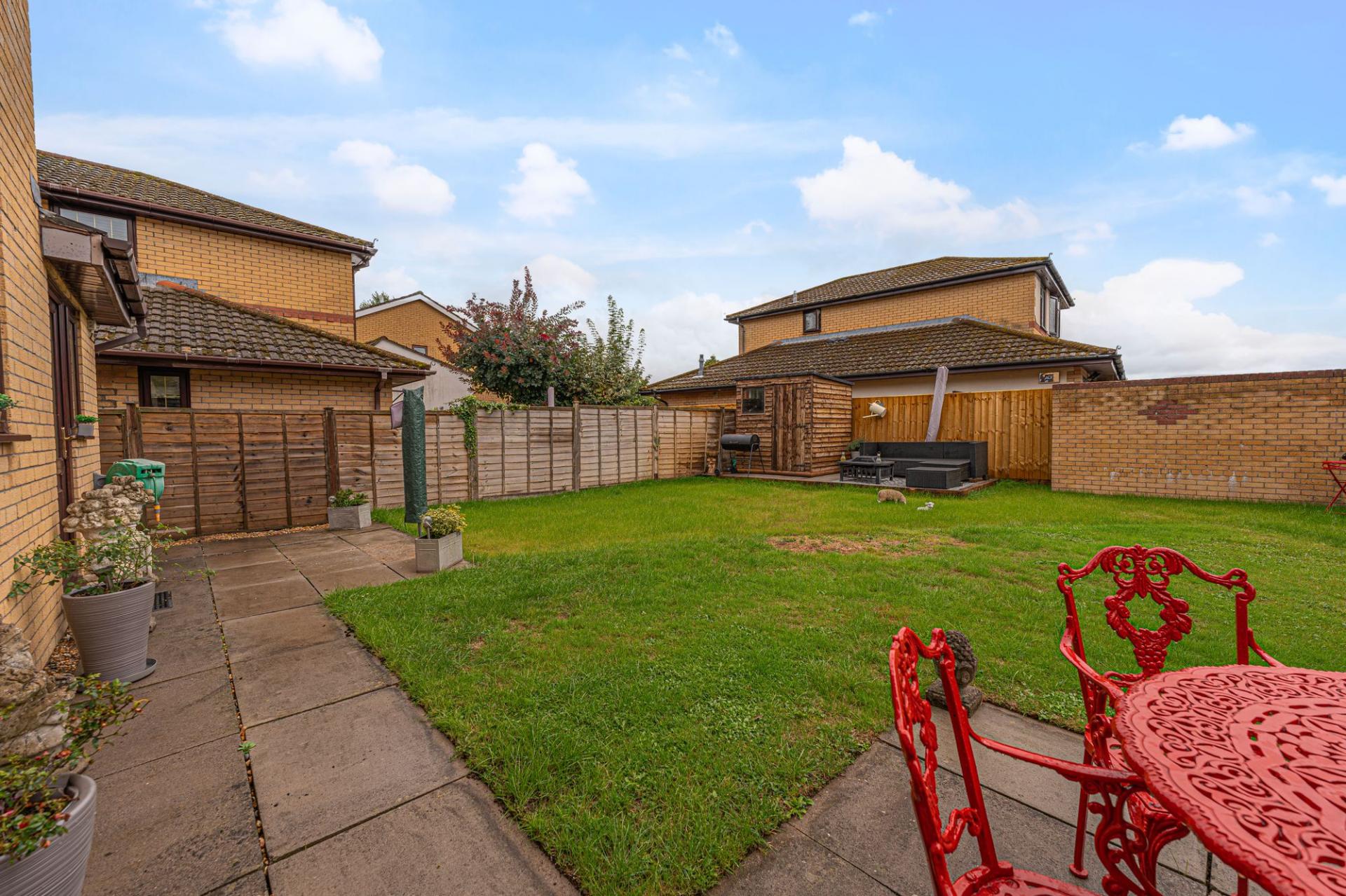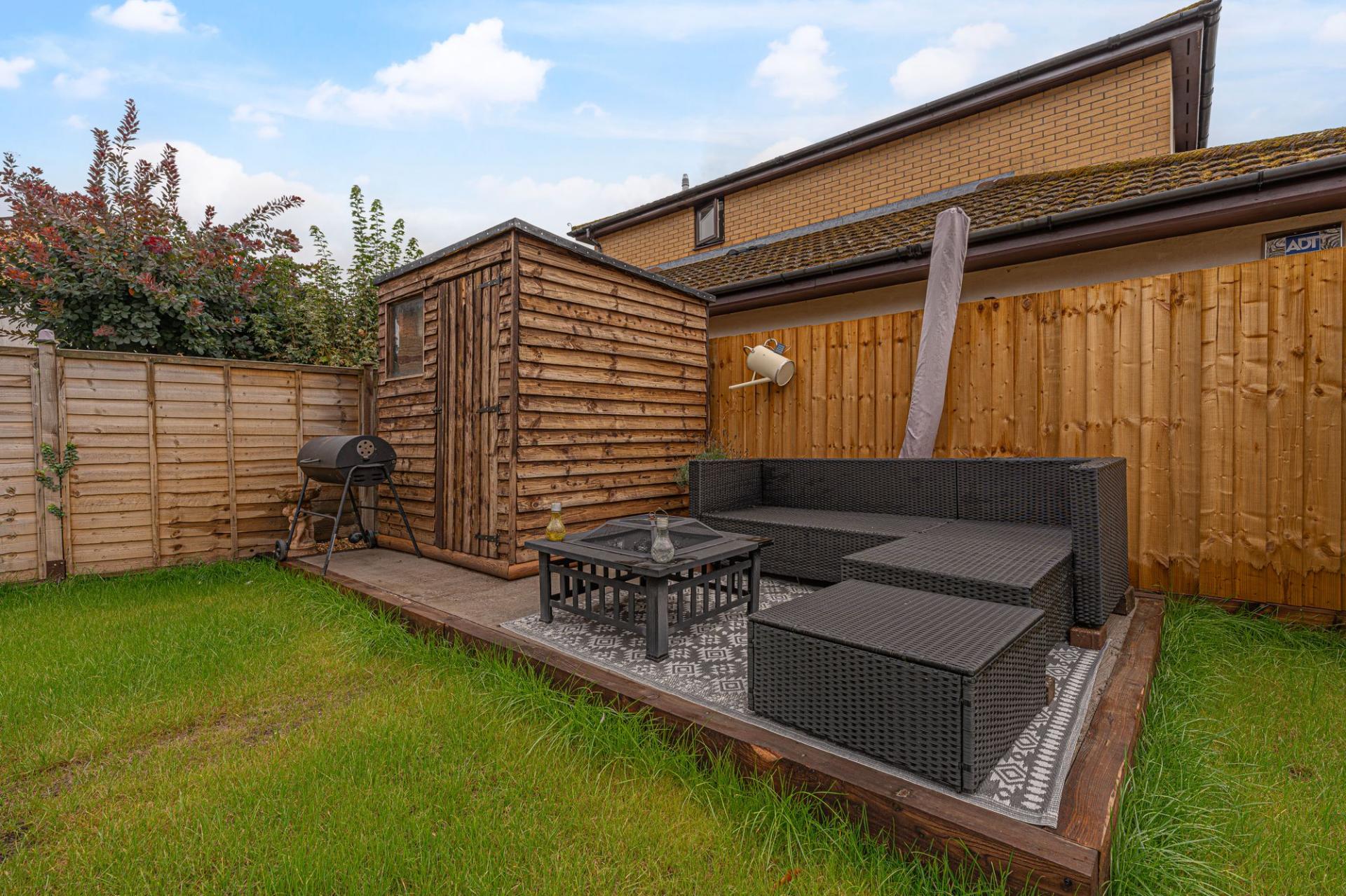 Stepping outside we have the superb rear garden, which has been landscaped to a high standard, offering a patio space from the house and an expansive lawn beyond, highlighting an abundance of space for relaxing in the sunshine, and entertaining visiting friends and family. The garden is large enough to welcome a large host of guests, and is perfect for al-fresco dining, sun bathing, and family events, with a hardstanding that is ideally suited for outdoor furniture, and a helpful shed great for storage. The plentiful garden space continues at the side and front of the house, with the grand lawn wrapping around the house to offer additional garden space, with an extended driveway that can park at least two vehicles off-road.