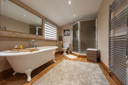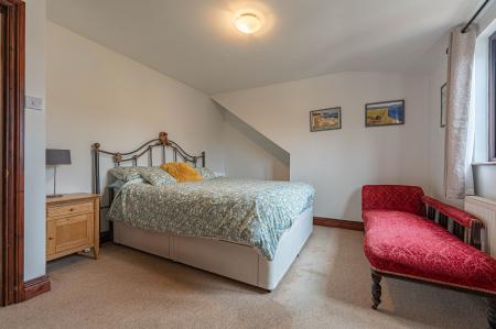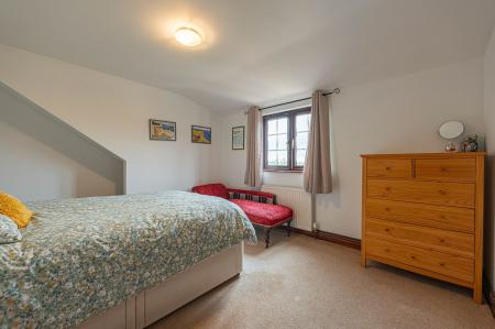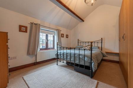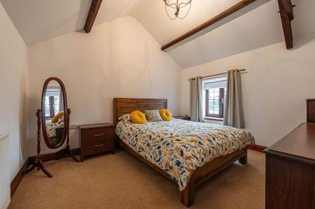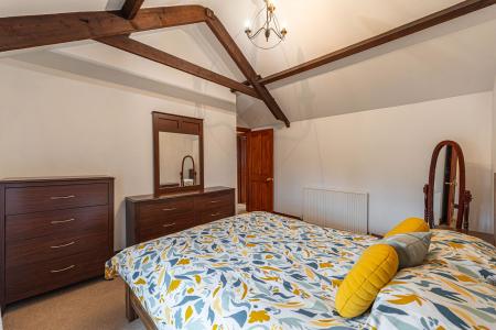 To the first floor we can find four bedrooms, which are all bright and generously sized double rooms. Several of the bedrooms showcase tall vaulted ceilings with exposed beams, providing a great sense of character for residents to enjoy, whilst from the hallway we can find an enormous bathroom, complete with a freestanding bathtub, a separate shower unit, and a large airing cupboard for added convenience.
