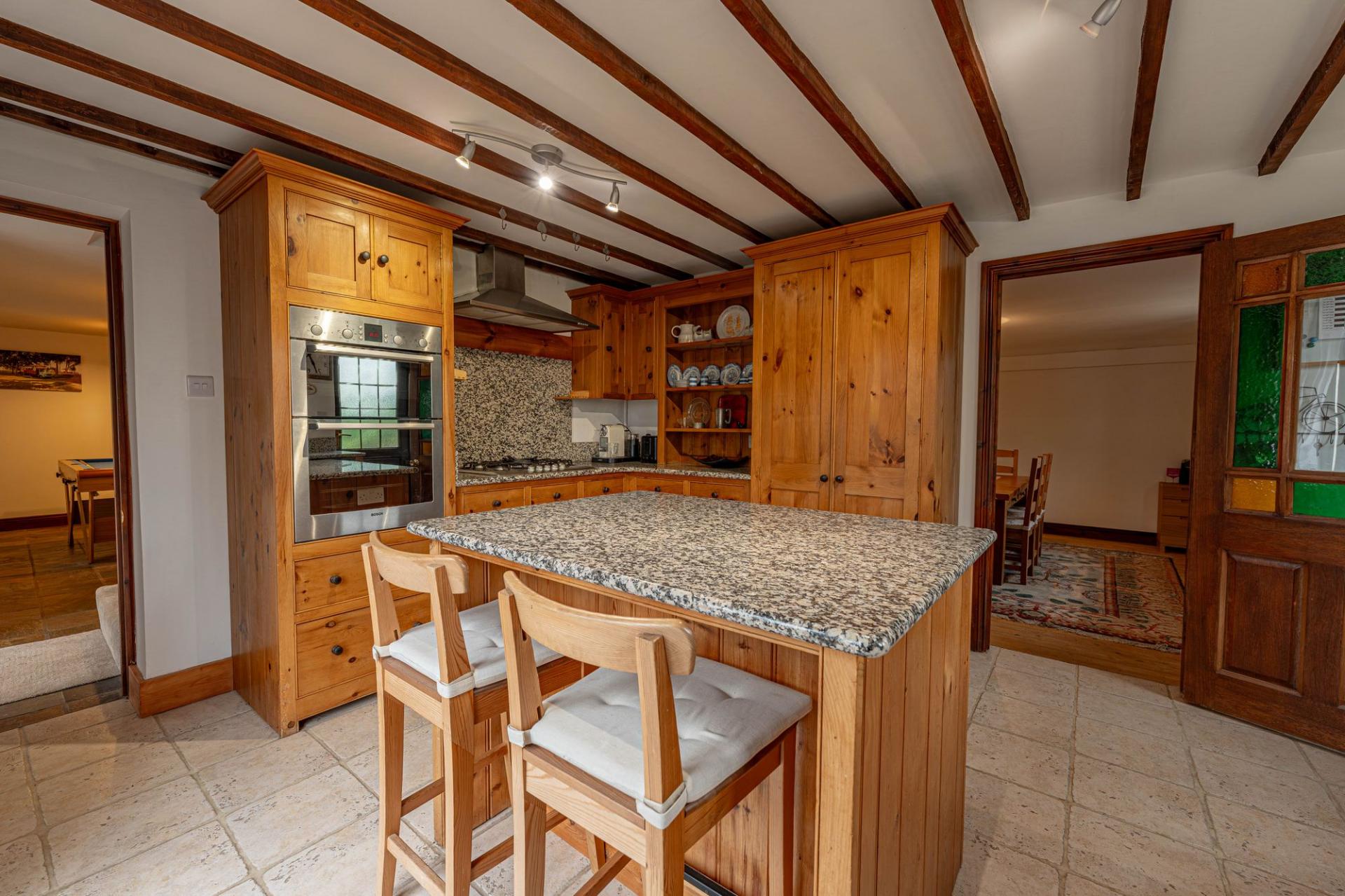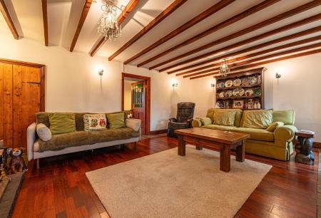 This executive family home has been recently refurbished and is beautifully presented throughout, offering a wide range of original features with a high standard of modern living. We enter this fabulous cottage through the front, passing through porch and a stained glass doorway, where we arrive at the spacious living room, complete with a charming fireplace and gorgeous wooden features. Continuing through the home we can find the similarly impressive dining room, which connects to a W.C and the magnificent kitchen, showcasing a bespoke design with a wide range of storage fixtures with vibrant wooden cabinetry. The kitchen is also features a large pantry, a Belfast sink, numerous appliances, as well as a breakfast bar for a casual dining option. Multiple windows flood the room with natural light, including French doors to the garden, and a side doorway that can acts as a secondary entry point. The property boasts a considerable amount of living space, with a large living room beyond the kitchen, and a bright conservatory at the rear of the house.