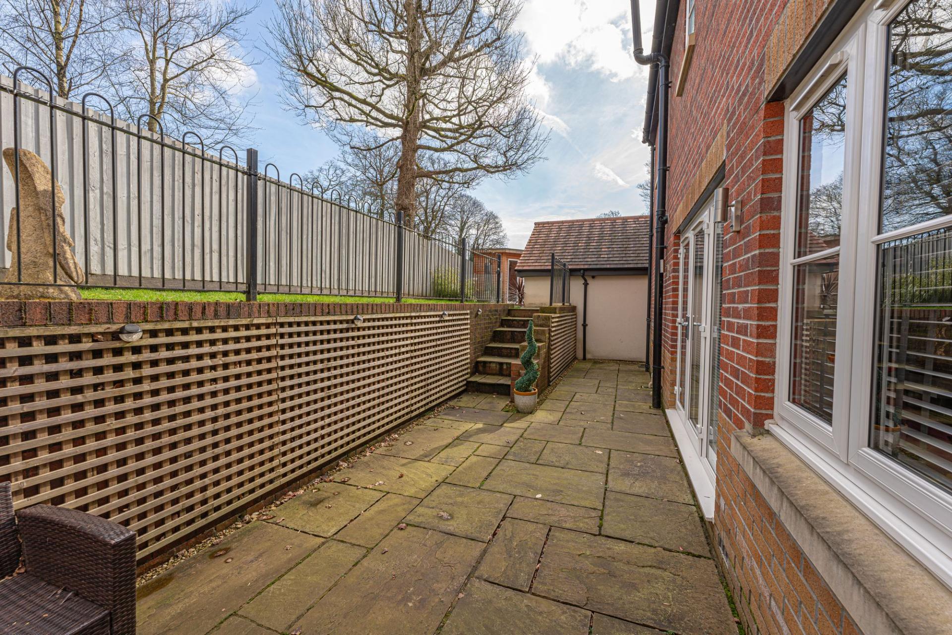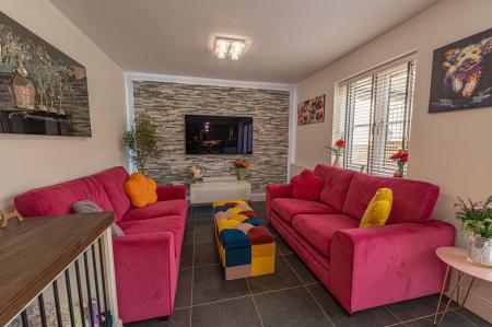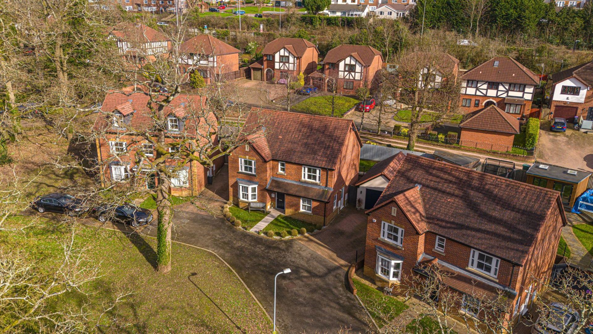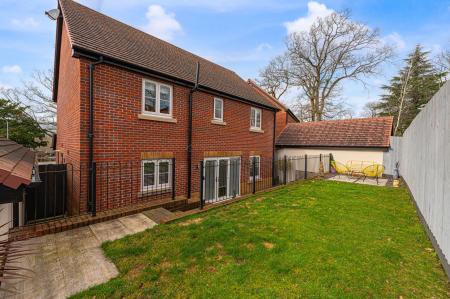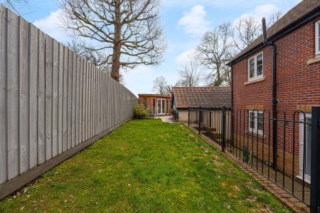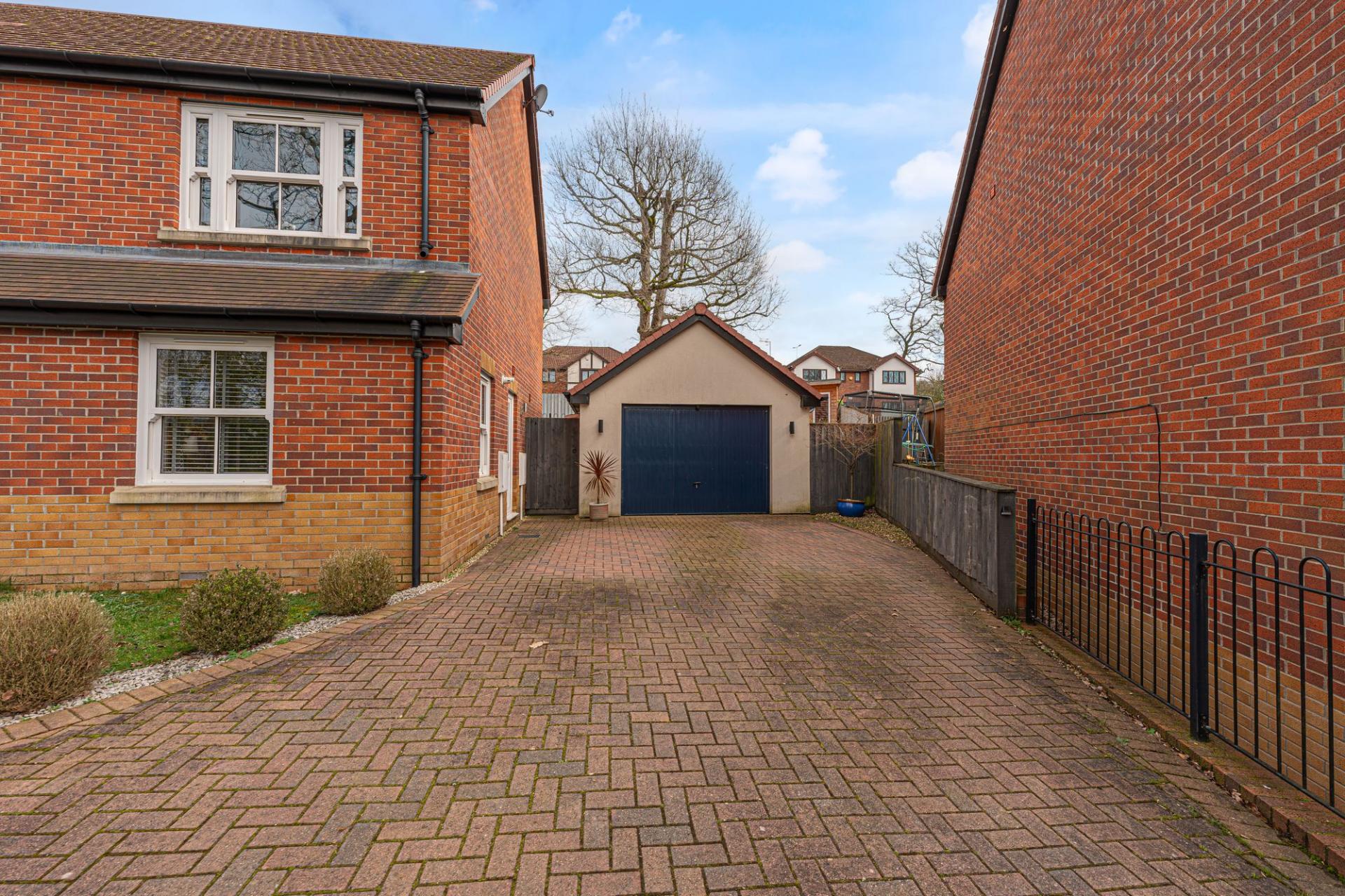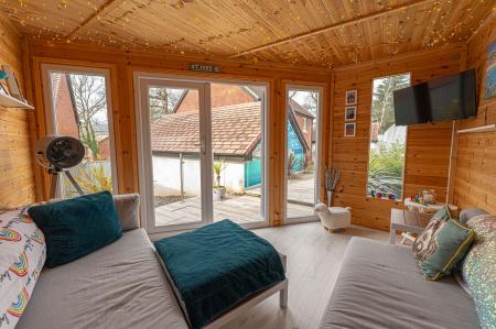 The property excels with its outdoor areas, with a two tiered garden offering abundance of outdoor space for residents to enjoy, with a large patio, spacious grass lawn and seating areas, all enclosed with privacy fencing. Further attractions include a beautiful mural decorating the far side of the garden, and a charming summerhouse equipped with power and lighting, creating a cosy lounge area with great potential for a home bar or games room. Additional highlights include a detached garage, which has is currently being used as home gym with a stud wall to allow a helpful storage area. Off-road parking is available thanks to a large driveway that can fit around 2-3 vehicles, while the communal green and mature trees to the front of the house provides a warm welcome on approach to this extravagant family home.