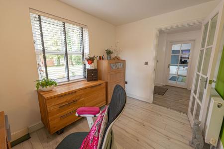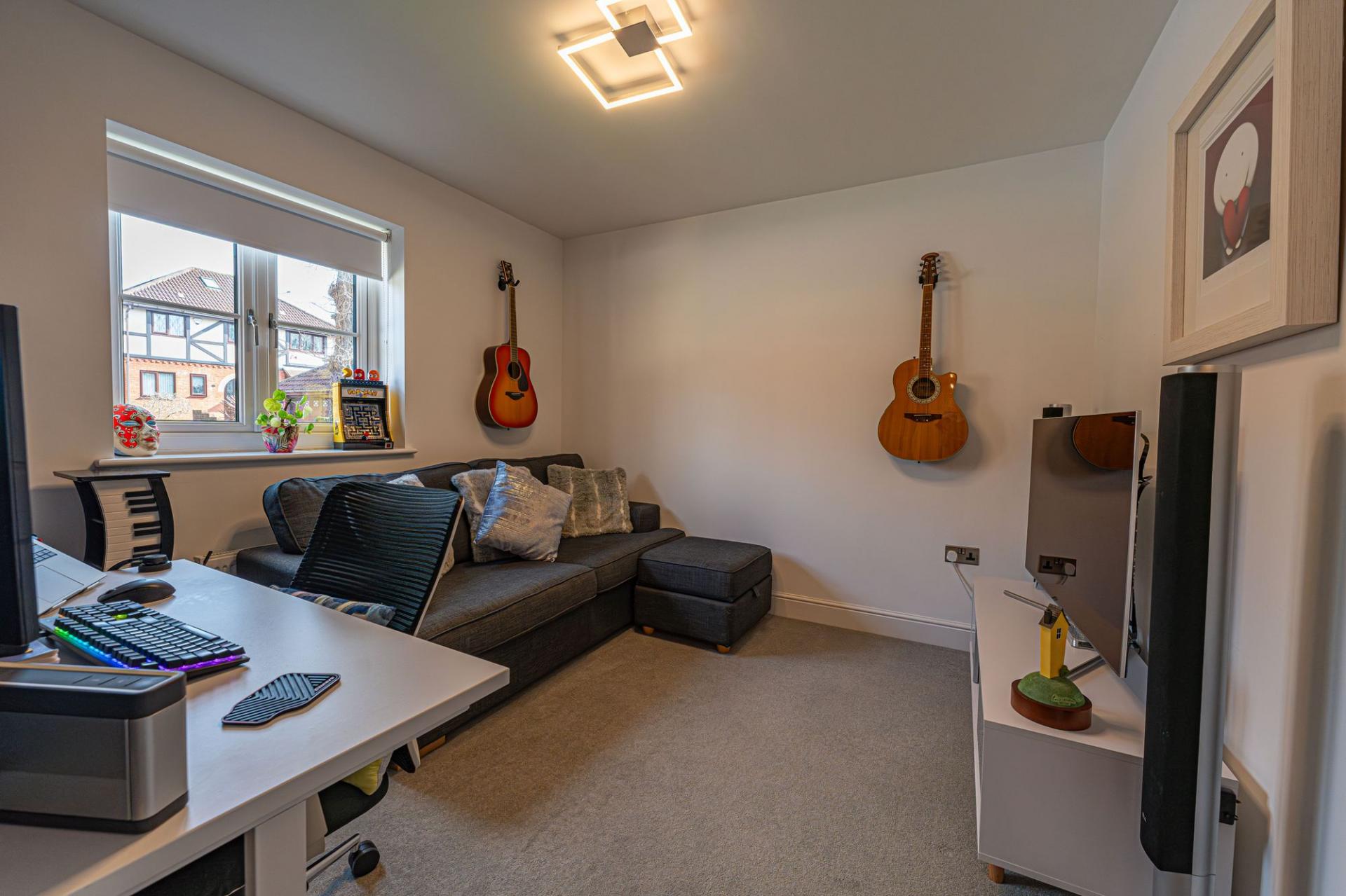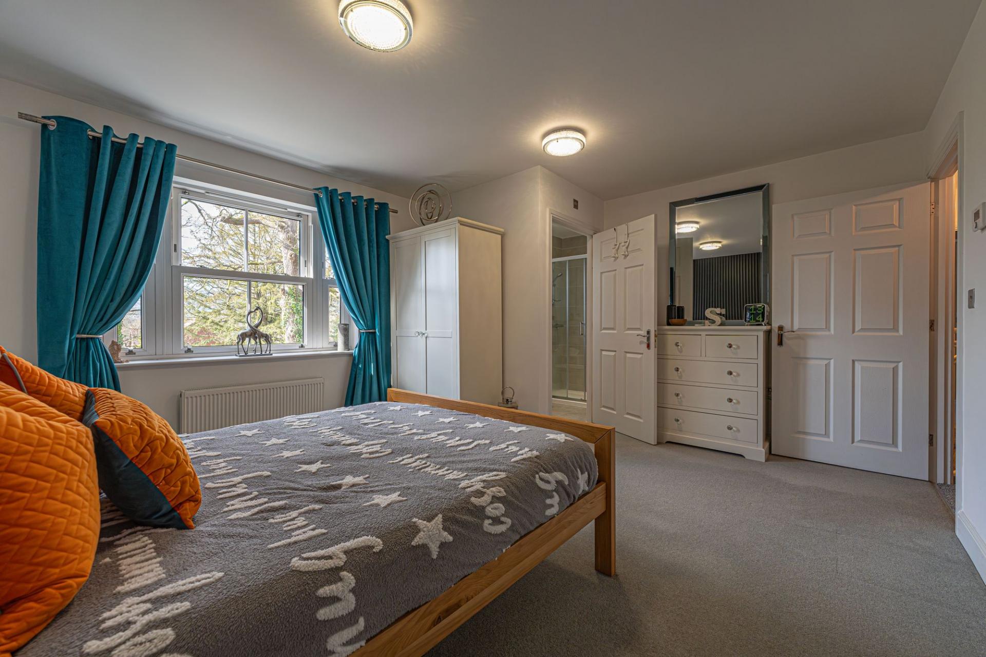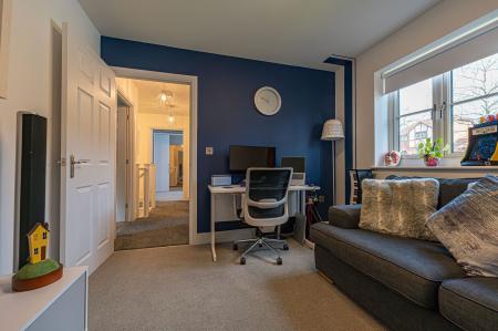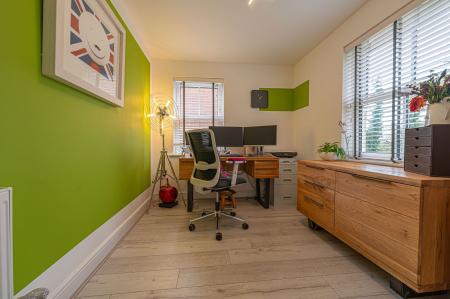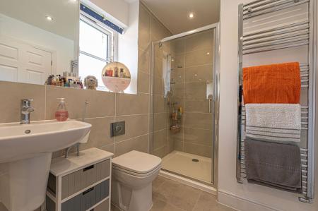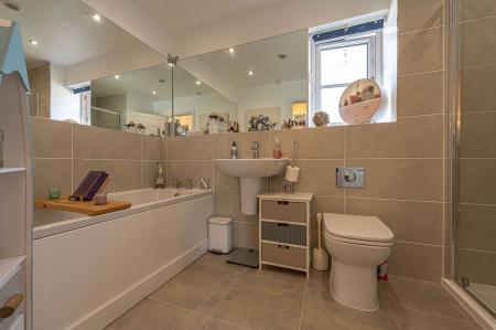 To the first floor we can find four generous double rooms that provide flexible living space for residents, with plenty of potential for another office, dressing room or entertainment area. The primary bedroom has the benefit of the superior size and a private en-suite shower room, while from the hallway we can find a communal airing cupboard and the family bathroom, featuring a bath tub and a separate shower unit.