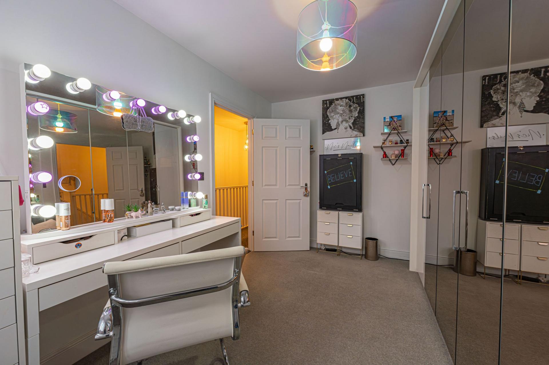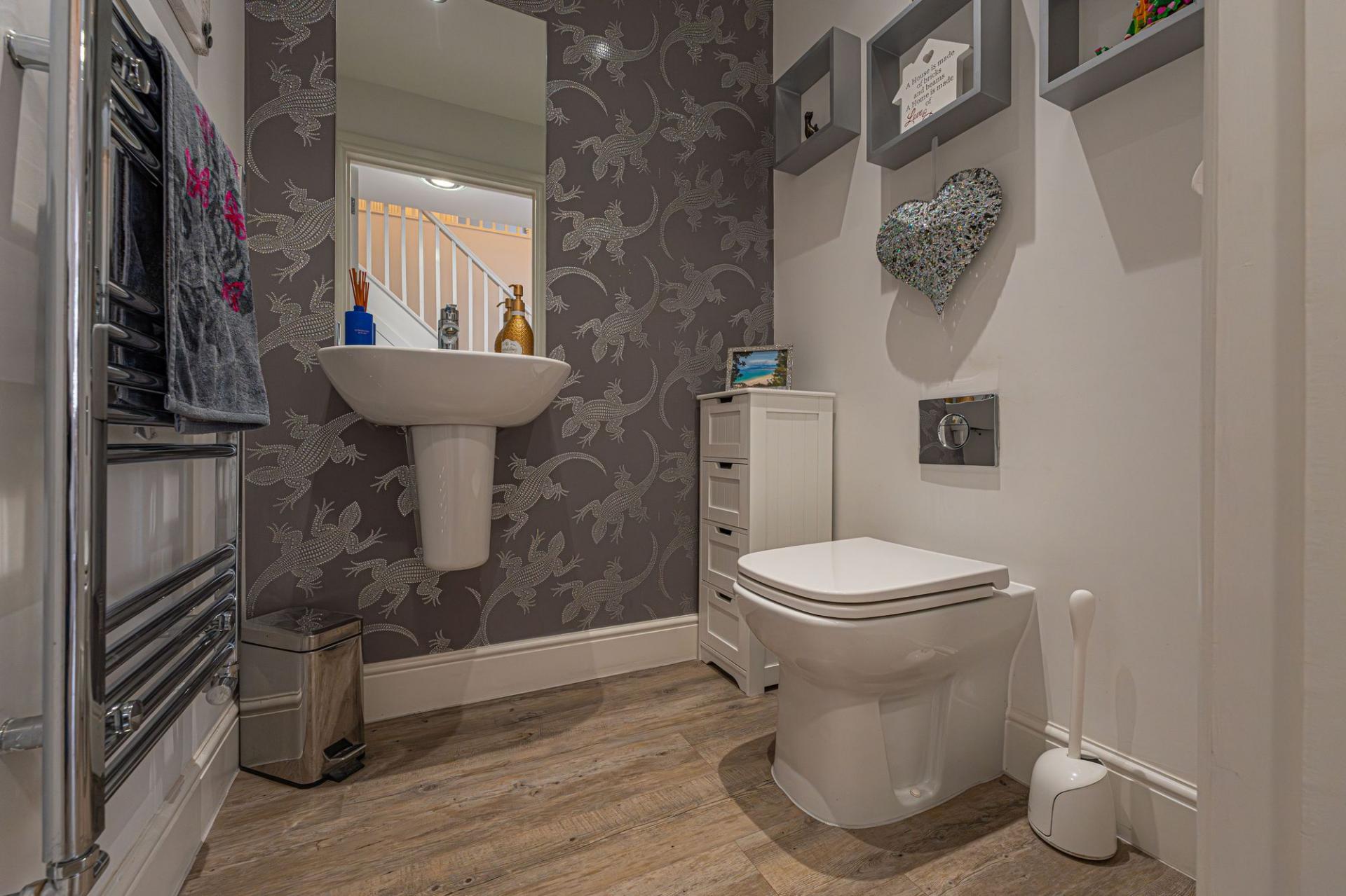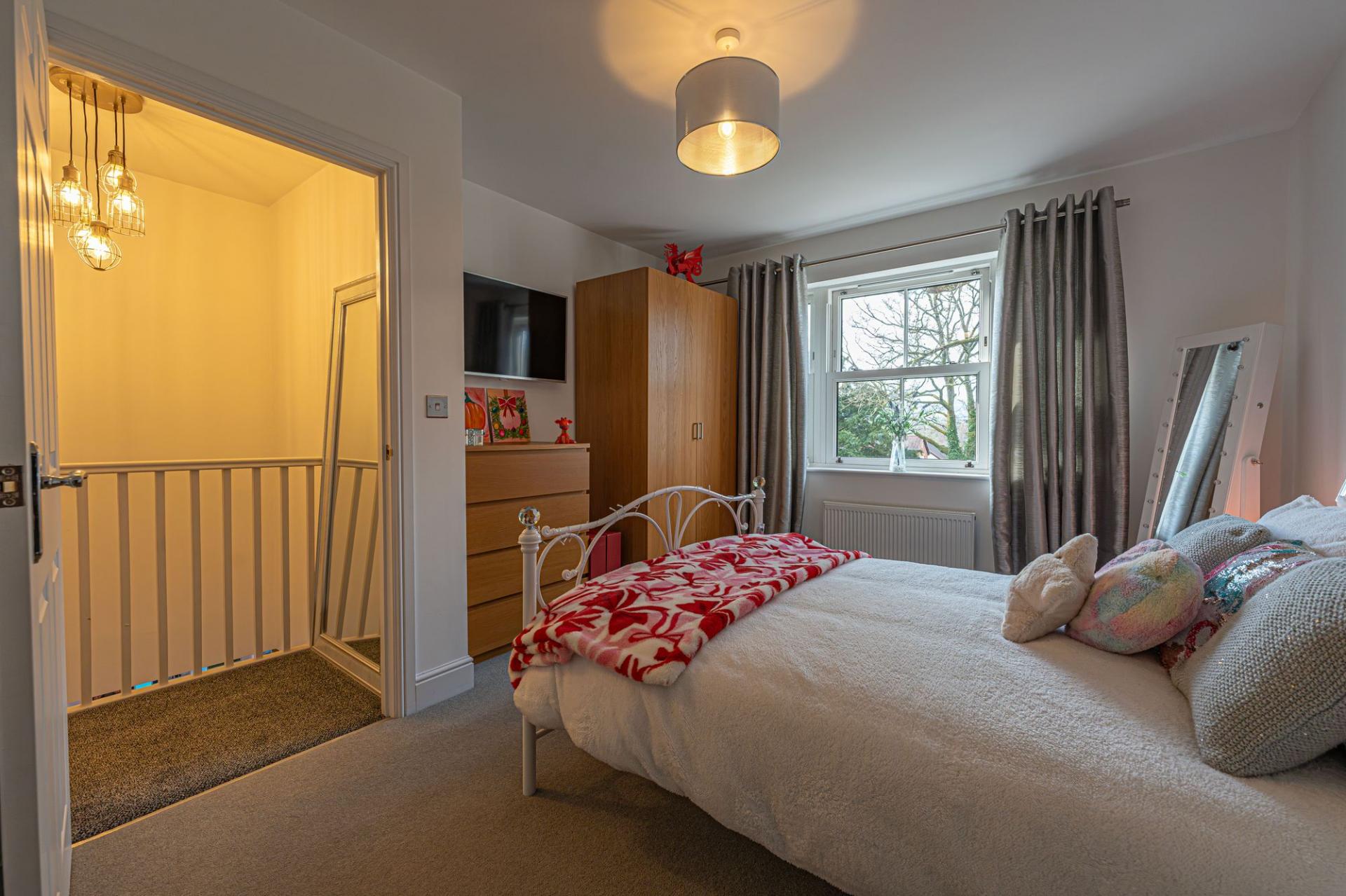 To the first floor we can find four generous double rooms that provide flexible living space for residents, with plenty of potential for another office, dressing room or entertainment area. The primary bedroom has the benefit of the superior size and a private en-suite shower room, while from the hallway we can find a communal airing cupboard and the family bathroom, featuring a bath tub and a separate shower unit.