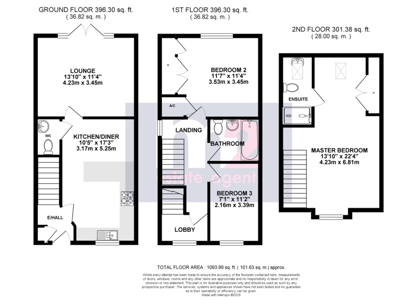 The top floor boasts the master bedroom suite with built in storage and ensuite shower room.