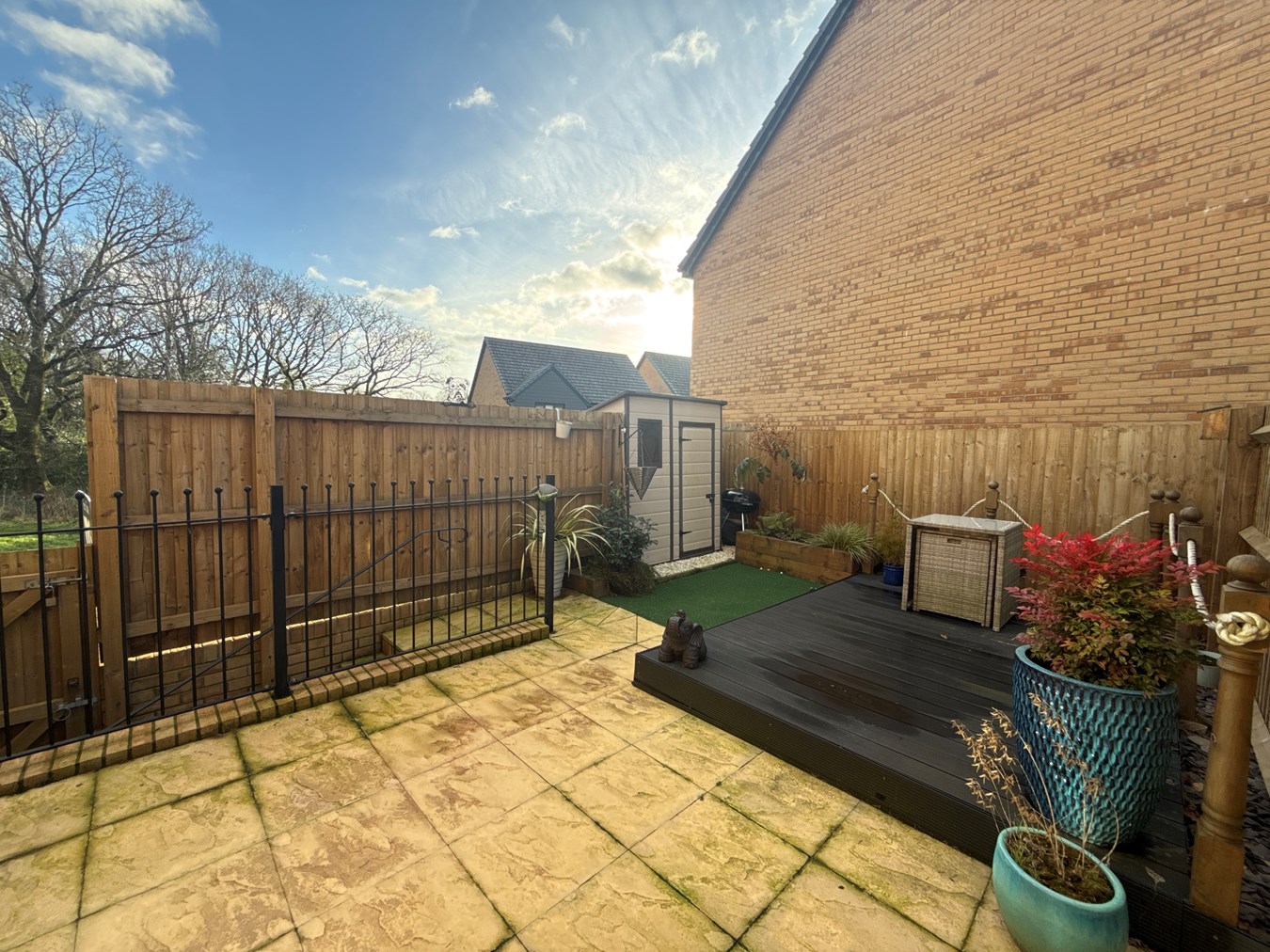 Outside the rear garden is fully enclosed with a combination of patio, decking and astro turf.
