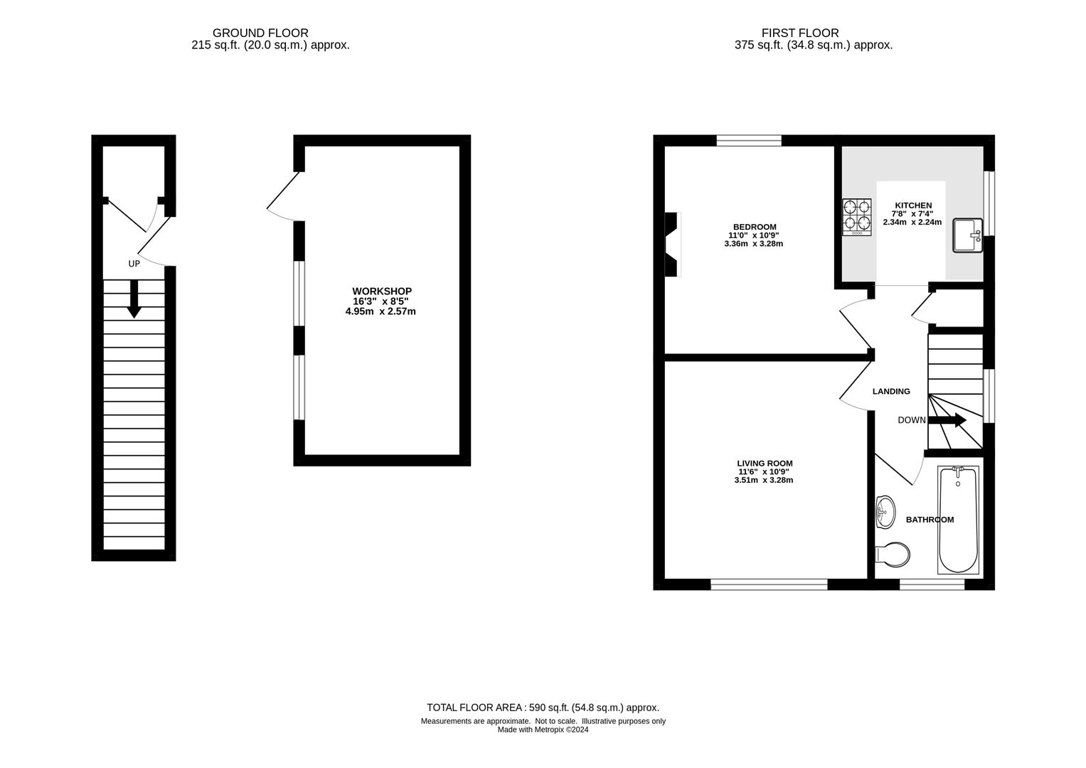 The property has been well-maintained throughout, and includes a spacious, double bedroom, bright living room with modern media wall, well-fitted kitchen and a part-tiled bathroom with white suite. Being on the first floor you have additional storage in the loft space. Externally, you have access into your own good-sized garden where there is also a large workshop with power and lighting and two further storage sheds.