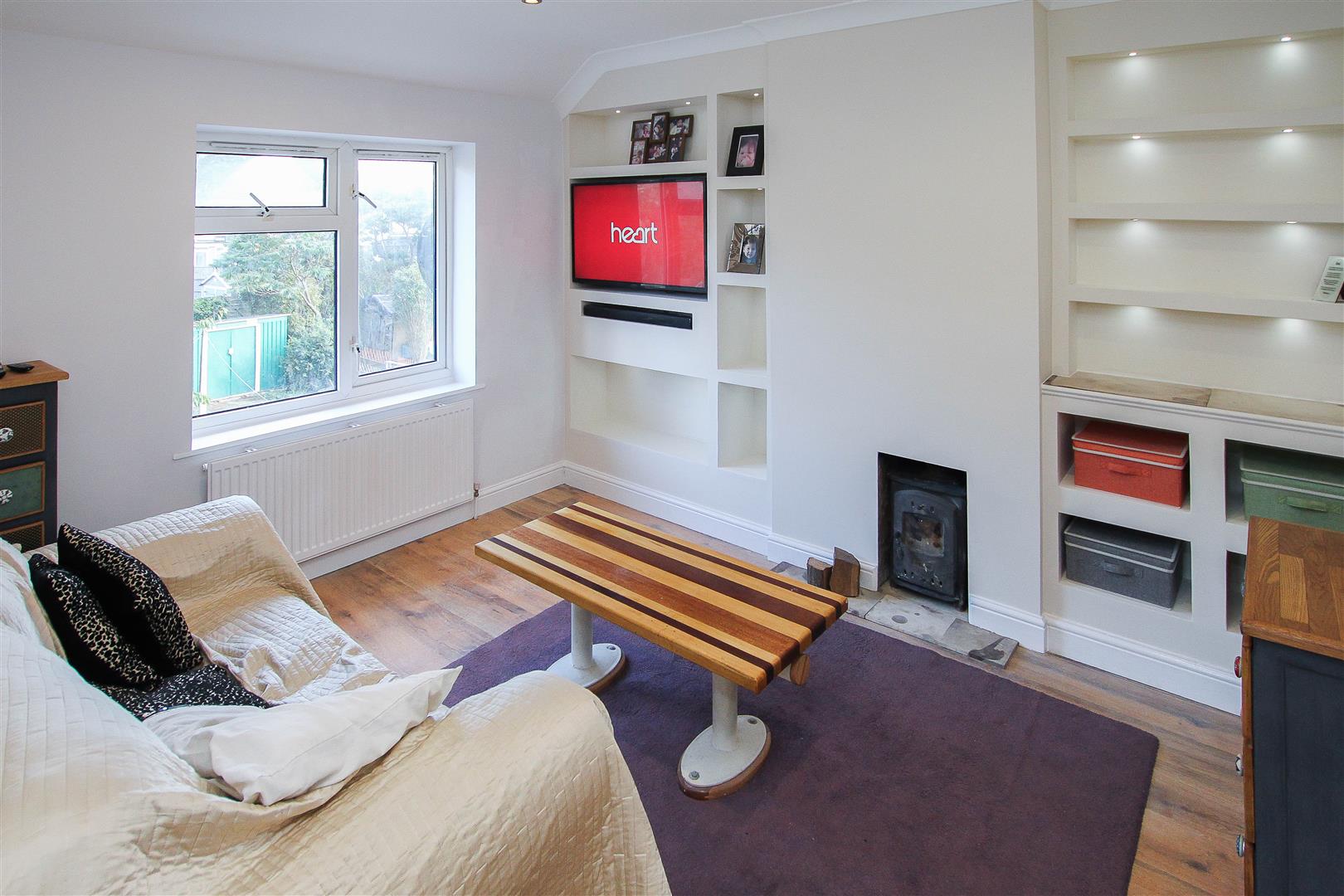 Living Room - 3.51m x 3.28m (11'6 x 10'9) - Widow to rear aspect. Modern media wall with storage space and shelving. Exposed wooden floorboards.