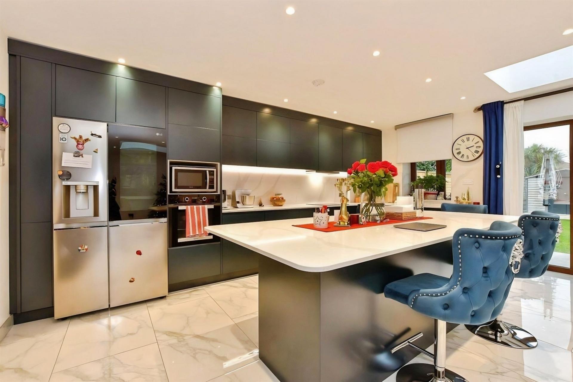 - Open-plan kitchen with island