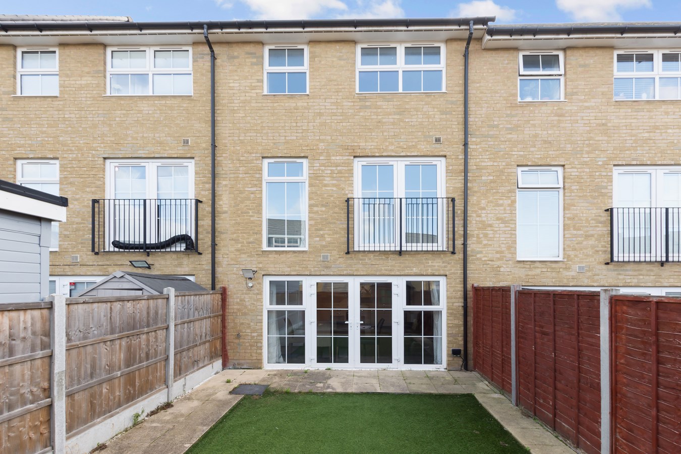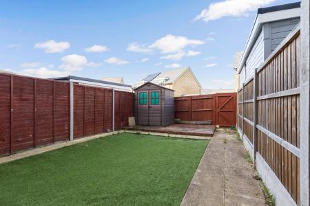 The fenced low maintenance rear garden features artificial grass and has a gate to the rear.