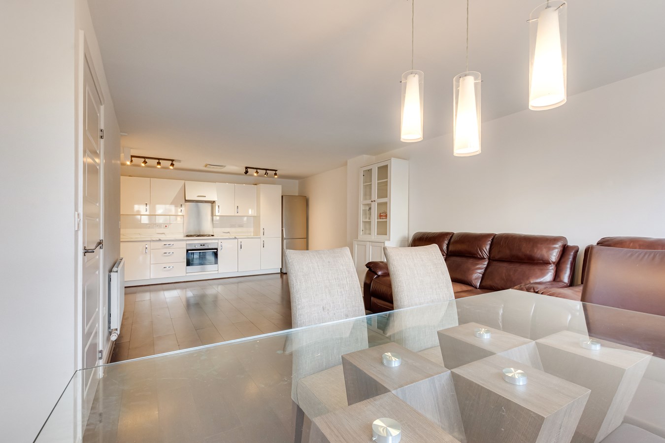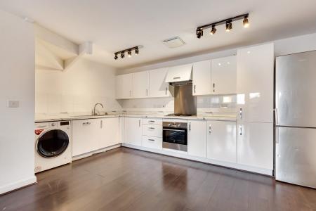 The lower ground floor features open planned living space that has a lounge area with patio doors leading to a South facing landscaped rear garden and a fitted integrated kitchen.
