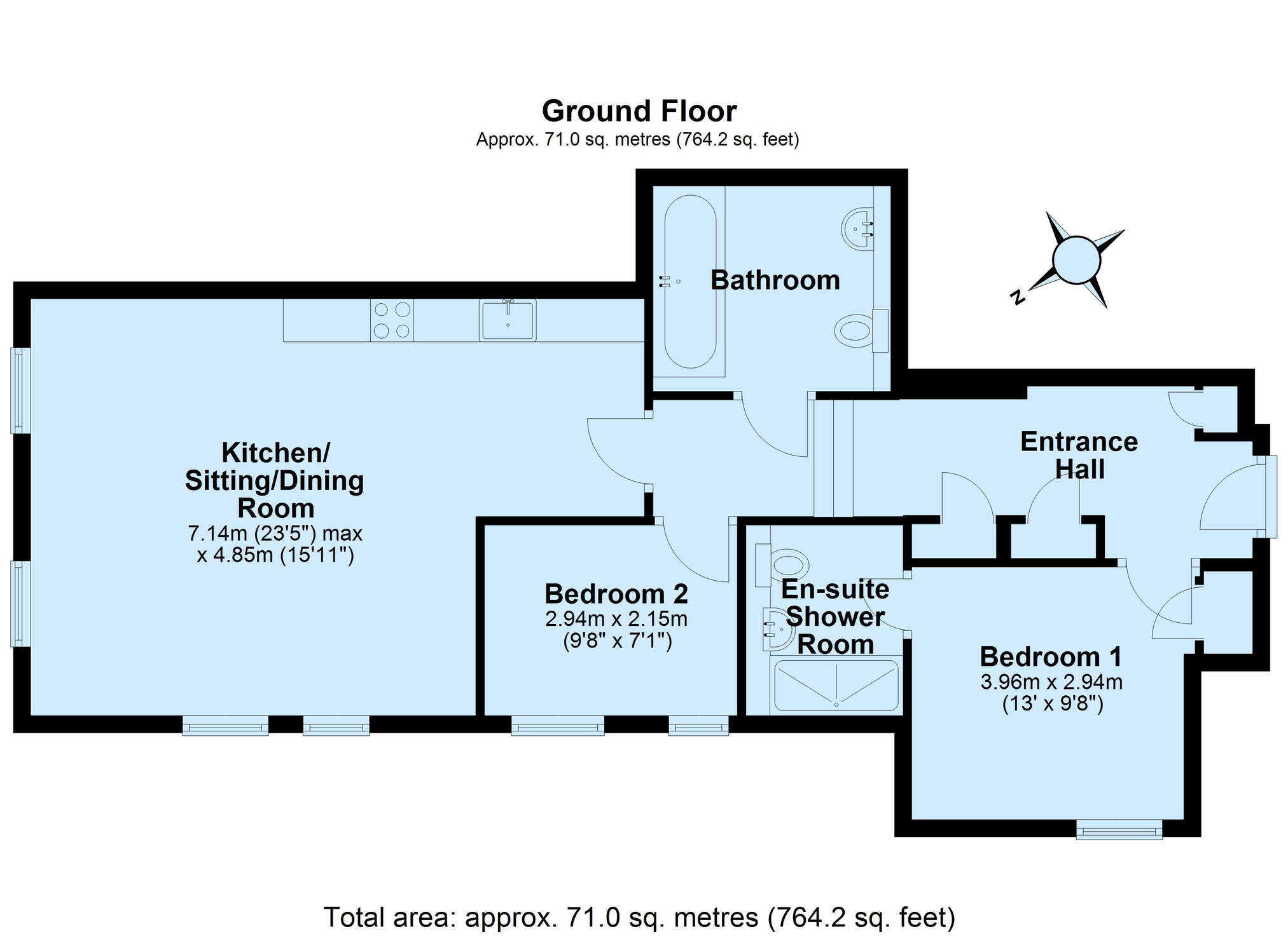 - 2 Bedrooms, 1 En Suite