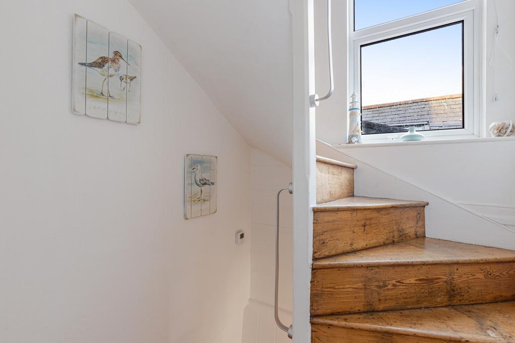This has been a much-loved second home which blends period charm with modern convenience. A pretty front courtyard garden sets the tone, a perfect spot for alfresco dining or morning coffee. The small entrance porch opens into a spacious, open-plan living area. This inviting space features an exposed stonework wall, and a cosy wood-burning stove. The dining area leads in to the well-appointed kitchen which is fitted with a range of built-in base units and integrated appliances, offering functionality alongside style. Off the kitchen is a most useful utility area. On the Lower Gound Floor is a snug which could also be used as a television or games room. There are two comfortable bedrooms on the first floor, the main bedroom to the front has an en suite shower room and a large bay window with pretty views out across the town. On the Second Floor there are two further double bedrooms and a family bathroom.