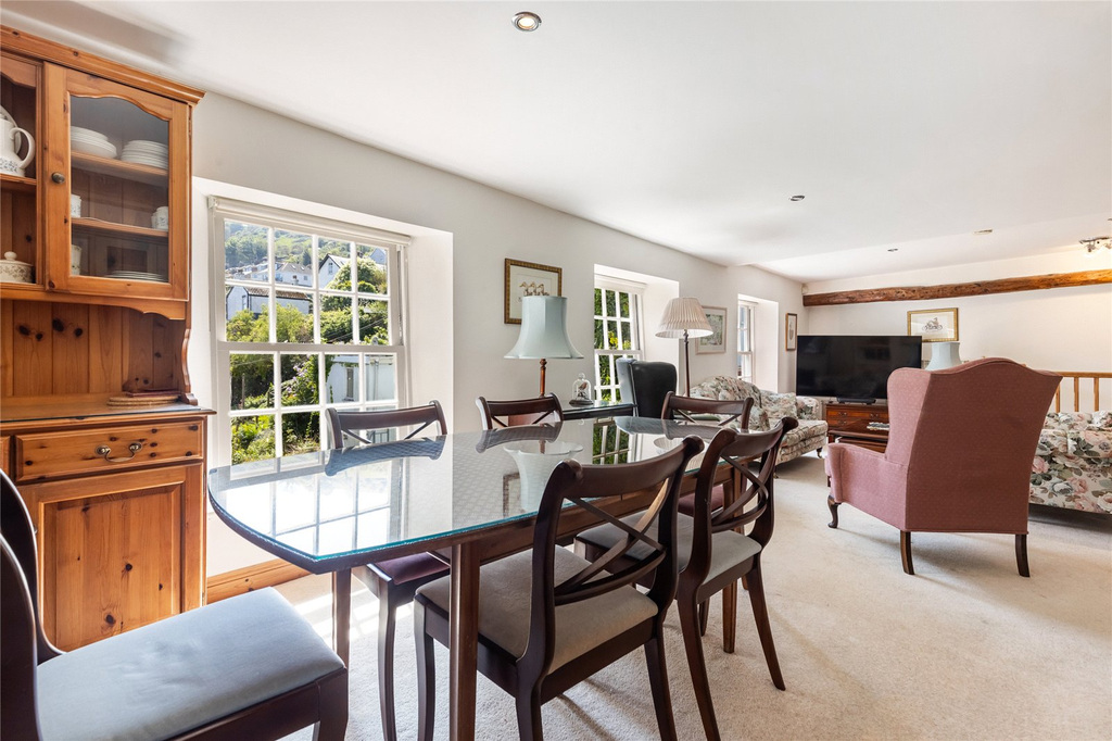 This pretty home is light and spacious throughout with two double and one single bedrooms, one of which has an en suite shower room, two reception rooms with home office potential and views of the River Dart.