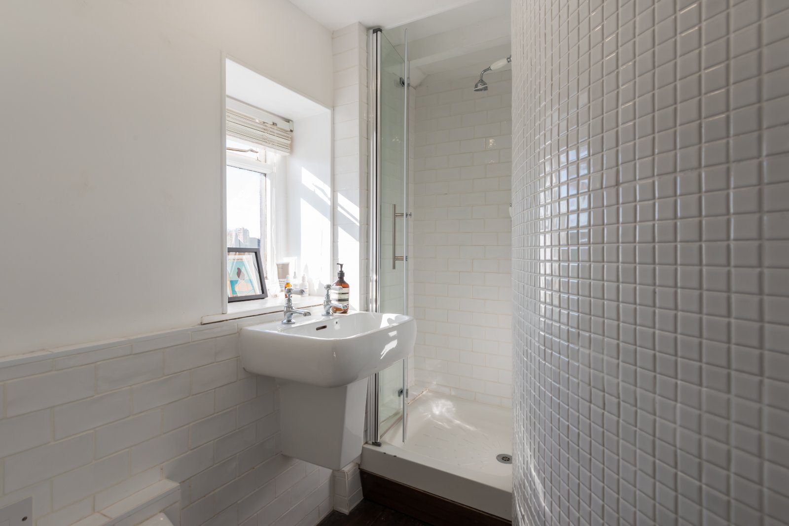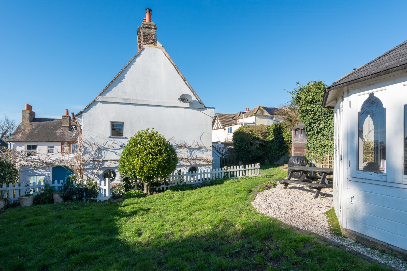 The property is tucked away, set back from the road and approached via a pedestrian gate leading to the front door, beyond is access to the rear garden.