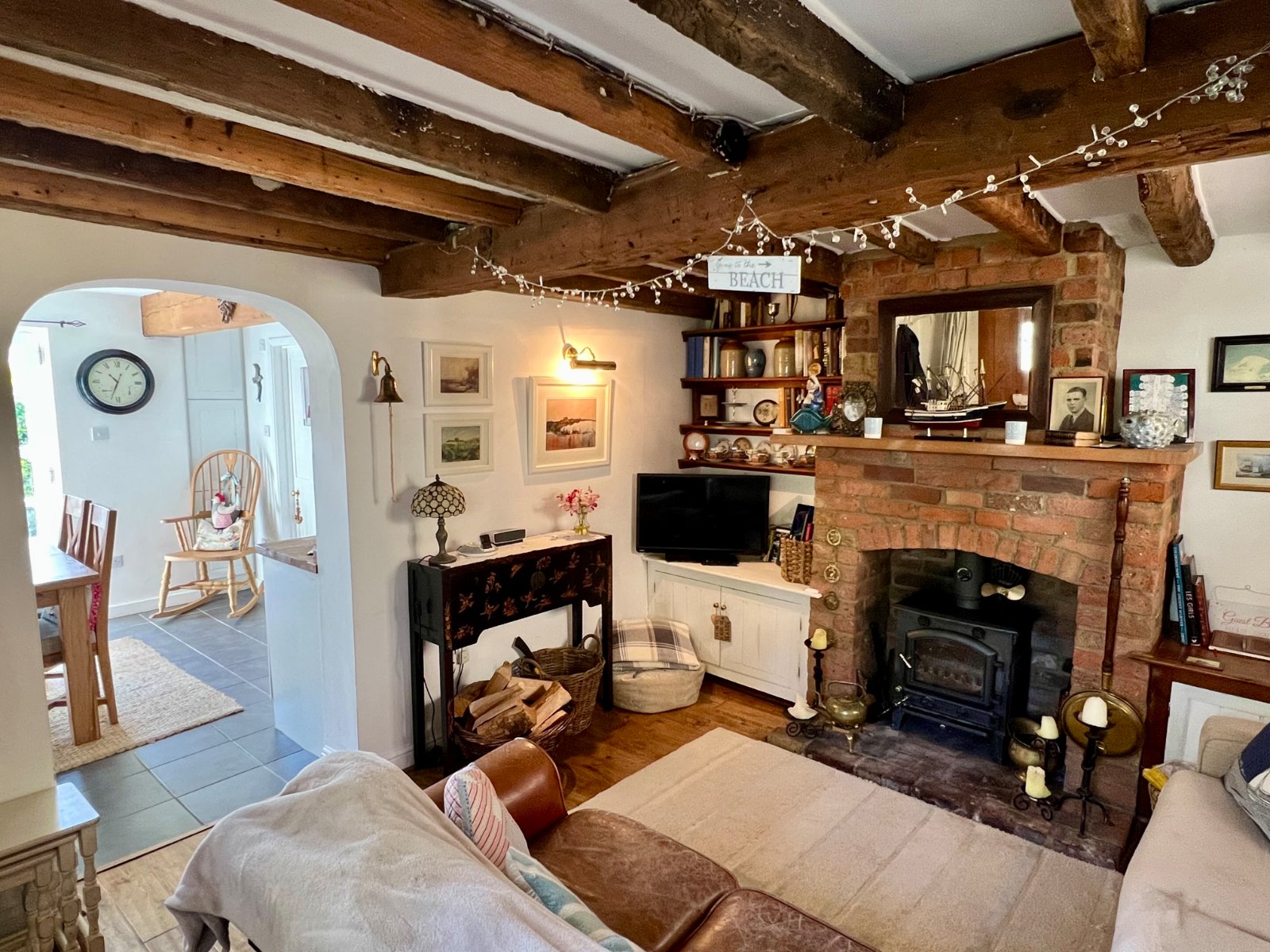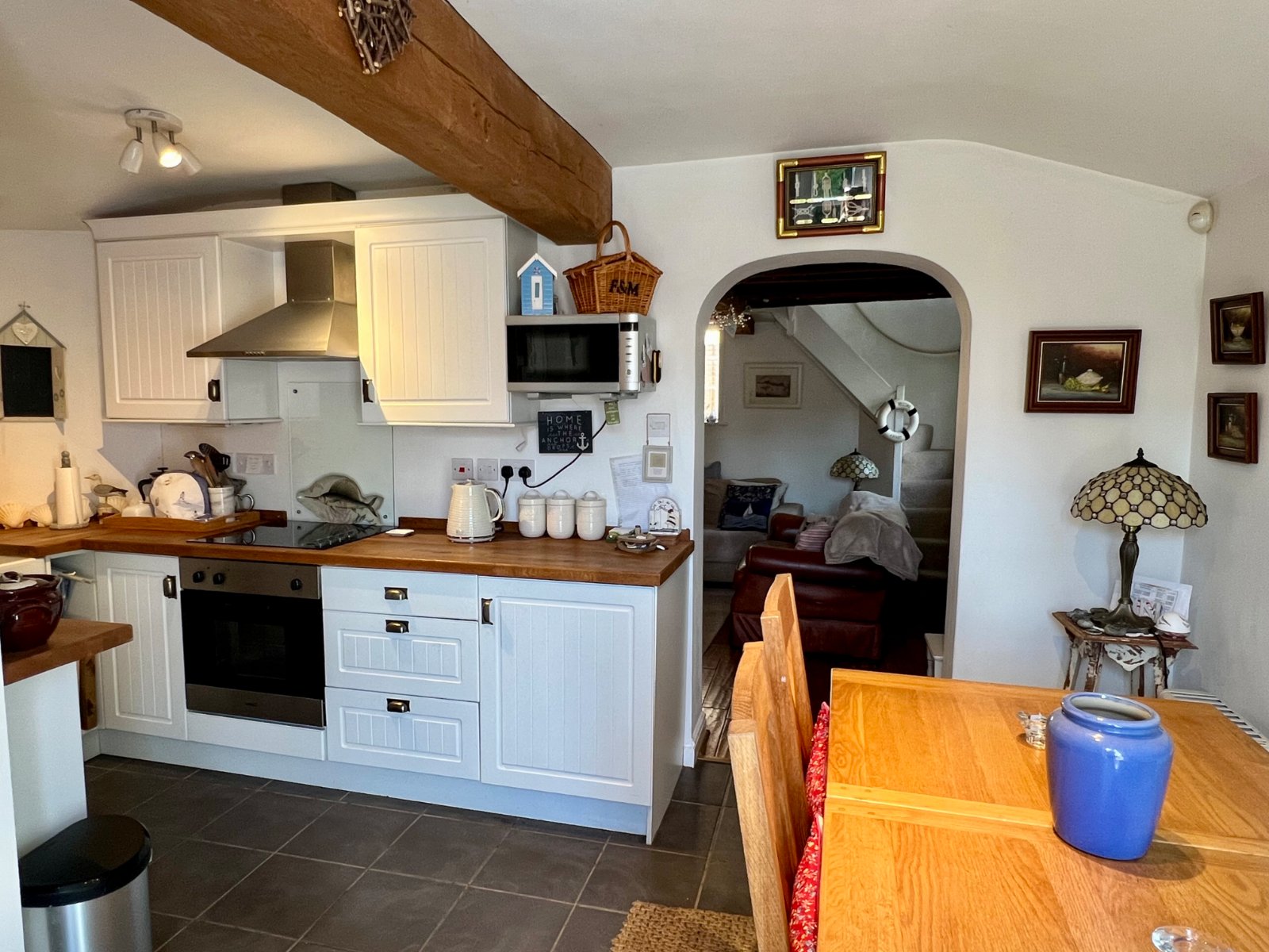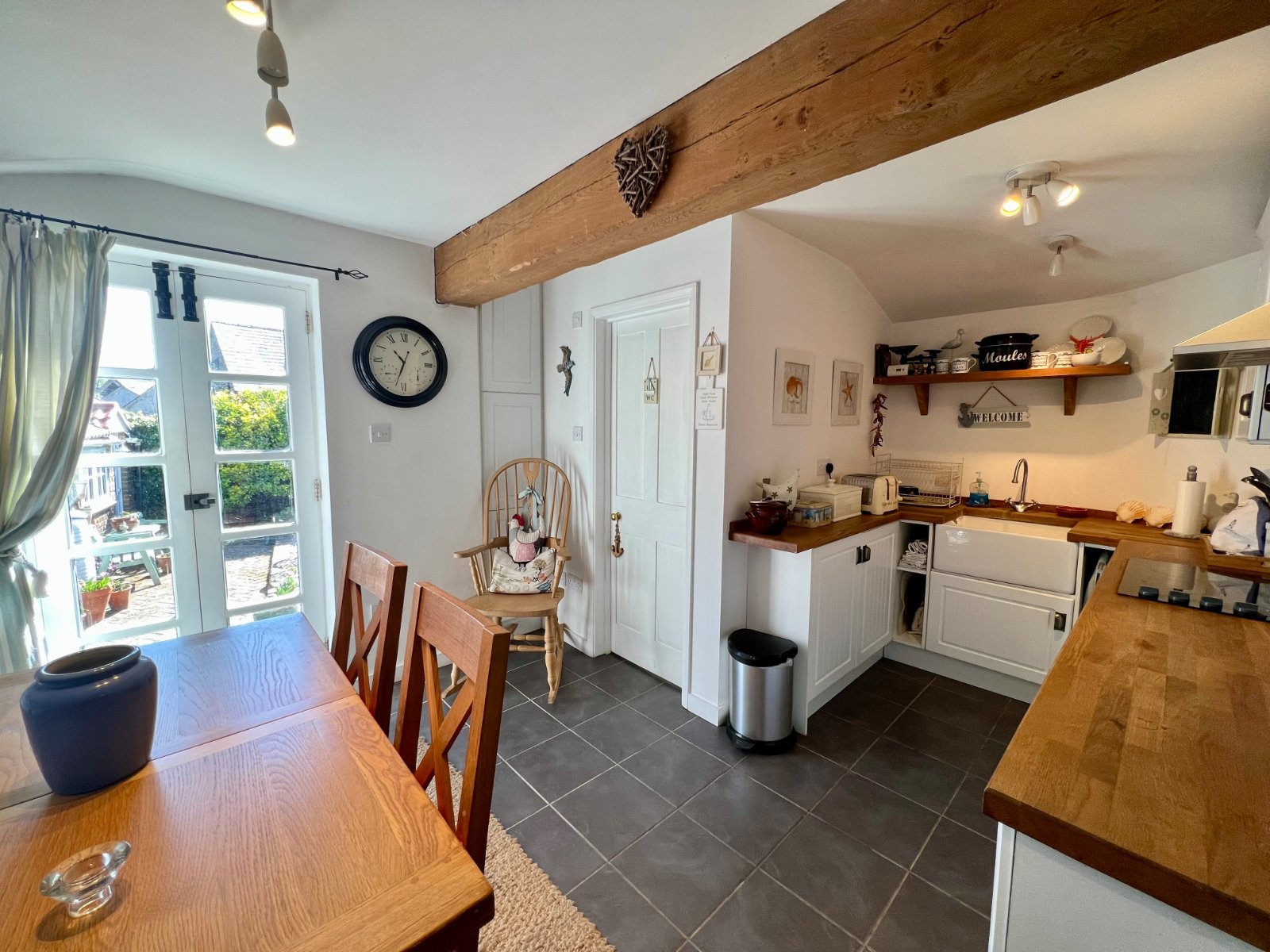 The cottage has a number of attractive and original features with the front door opening to the sitting room which is double aspect and has the benefit of a woodburner. Off this room is the kitchen/diner which is again double aspect, light, modern and well appointed and has French doors leading to the inner courtyard garden. A shower room completes the accommodation on this floor. From the sitting room, a staircase leads to a pretty and generous sized double bedroom with a vaulted beamed ceiling.
