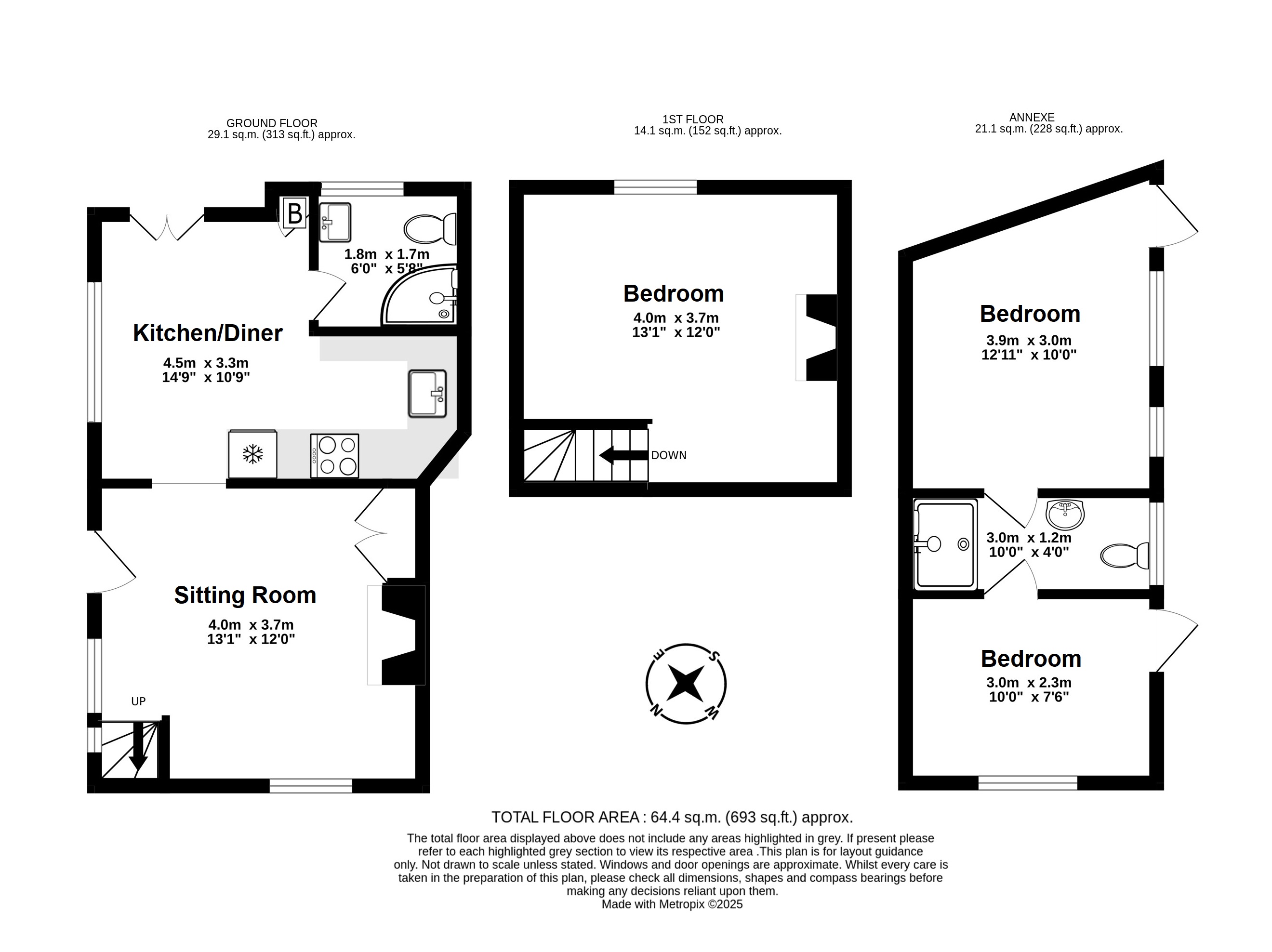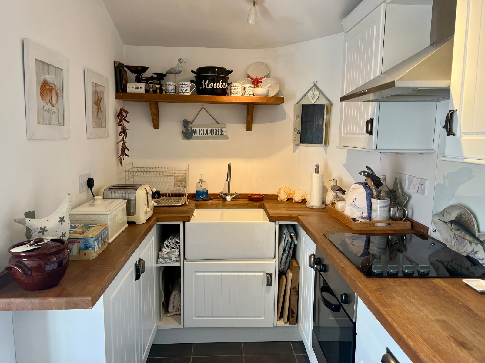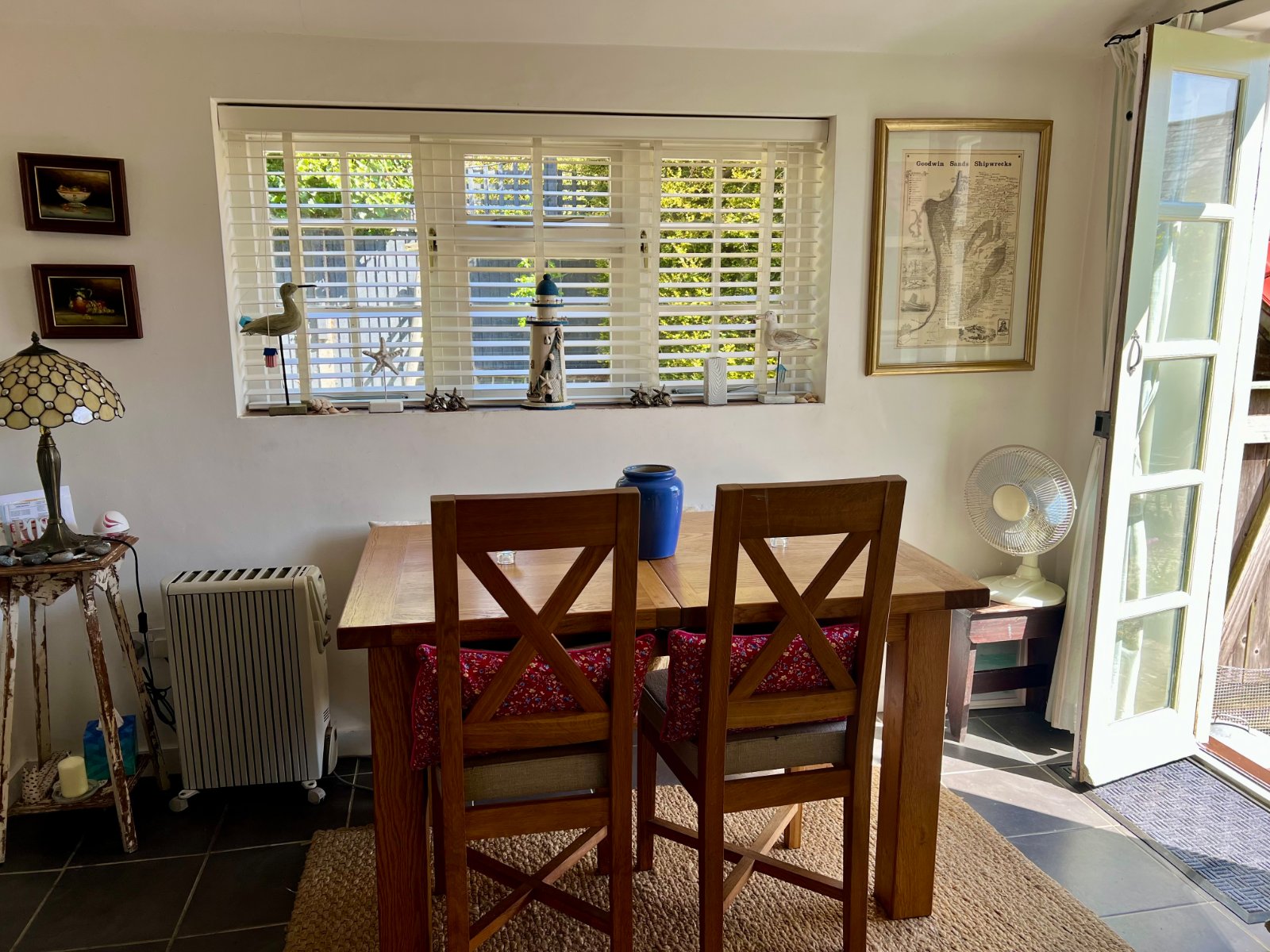 The cottage has a number of attractive and original features with the front door opening to the sitting room which is double aspect and has the benefit of a woodburner. Off this room is the kitchen/diner which is again double aspect, light, modern and well appointed and has French doors leading to the inner courtyard garden. A shower room completes the accommodation on this floor. From the sitting room, a staircase leads to a pretty and generous sized double bedroom with a vaulted beamed ceiling.
