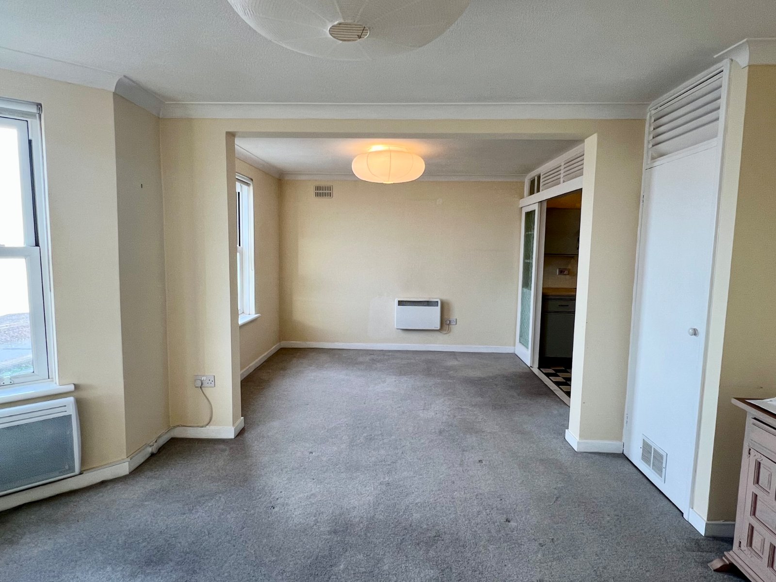 Dating from the 1980’s, the property is located within a purpose built block with use of a lift to all floors. The flat is now is need of updating in a few areas, such as the kitchen, but offers spacious and light accommodation and benefits from double glazing throughout. Heating is via electric heaters each with an individual thermostat.