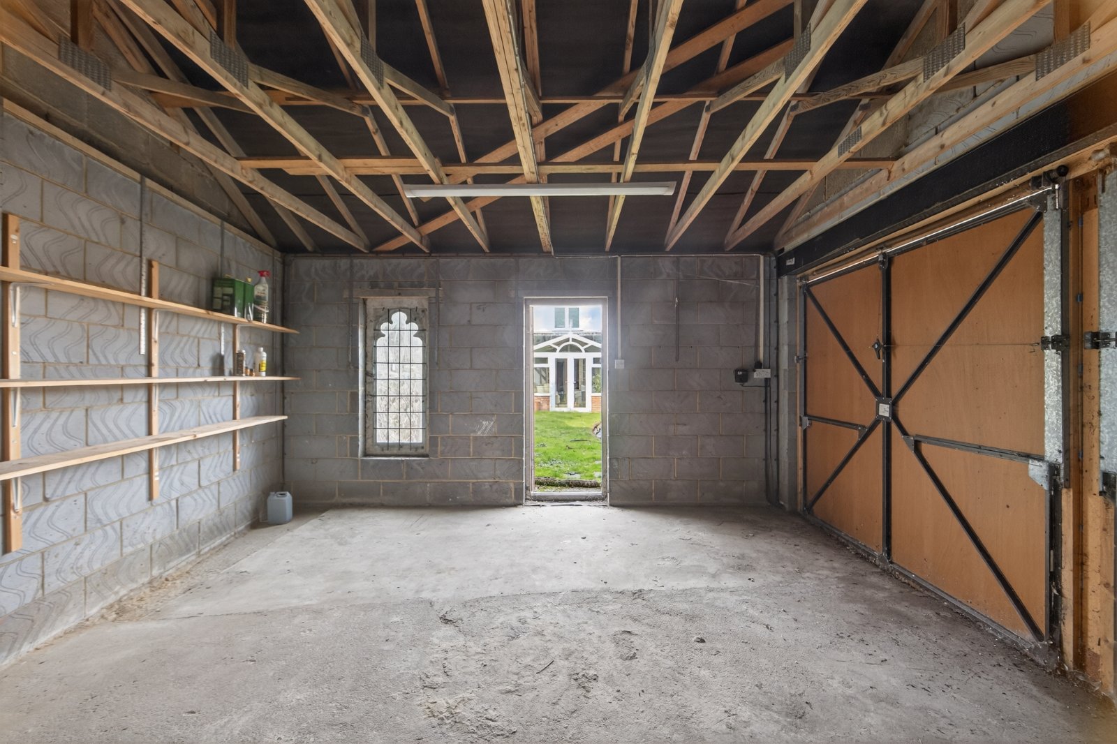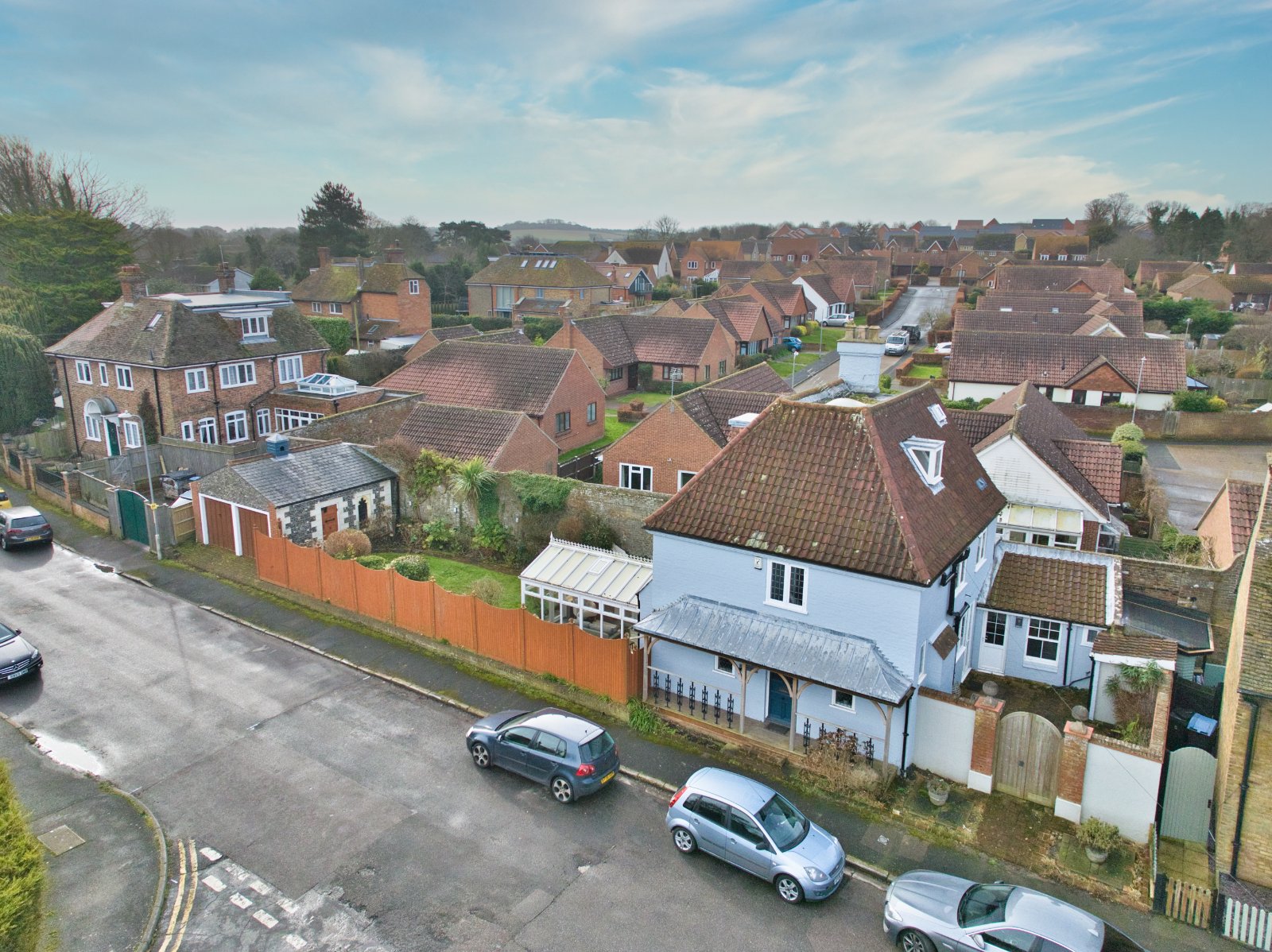 To the east side of the house, the fully enclosed private garden is laid mainly to lawn and bordered with mature flowerbeds and an old wall to one side. At the bottom of the garden is a substantial block-built double garage with an attractive flint façade and pitched roof facing the house. There is a personal door to the garage and gate giving access to the roadside. On the west side of the house is a pretty and secluded brick paved courtyard with a brick built store and double wooden gates leading onto Hawksdown Road.
