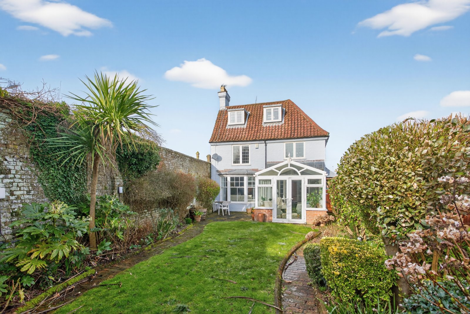 The house has undergone some sympathetic upgrading including redecoration throughout, new kitchen, new flooring, new boiler and some cast iron radiators, whilst also retaining a number of original features such as leaded windows, picture rails and ceiling roses, stripped pine doors and of course the pantile roof. The timber-framed lead covered Regency style veranda sets the tone for a well built and well proportioned home.