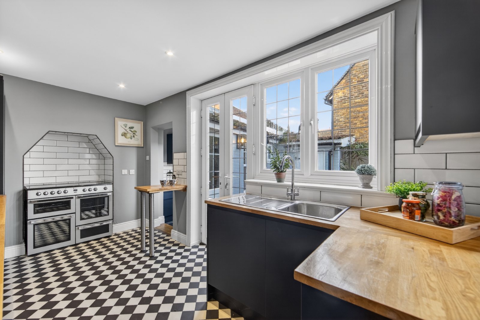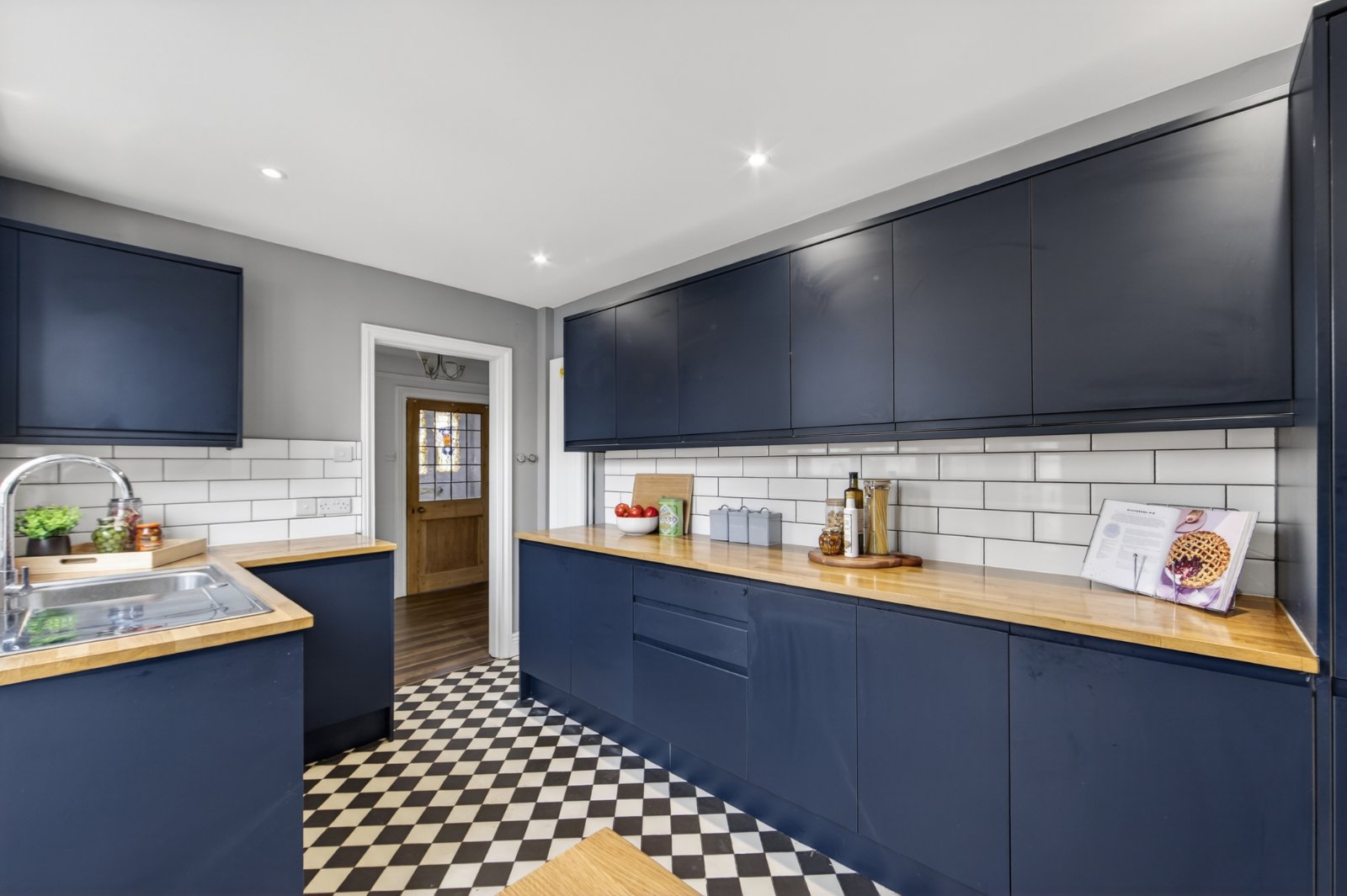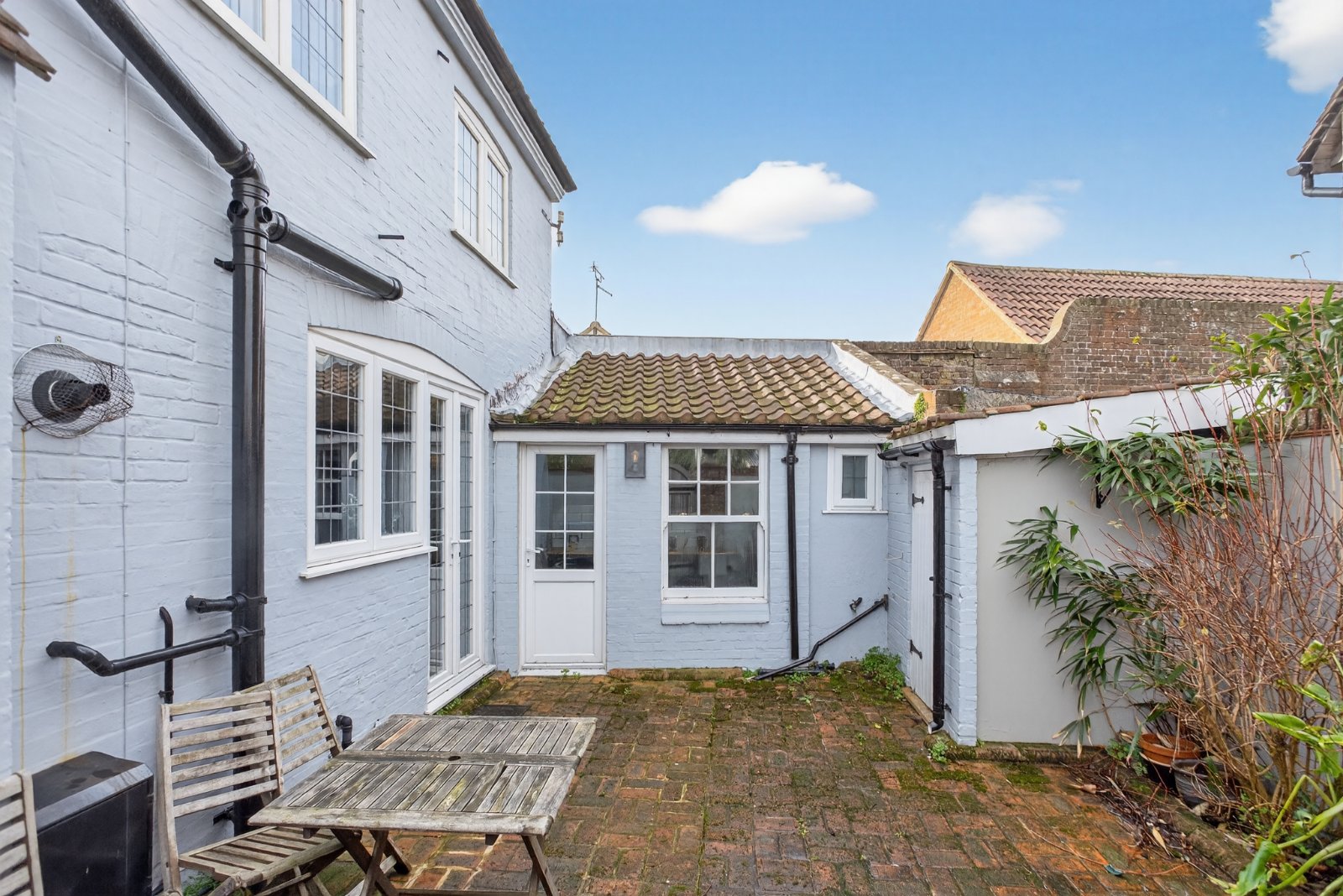 From the spacious entrance hall there are two good sized reception rooms. The sitting room benefits from a fitted coal effect gas fire and bay window overlooking the garden. From the dining room, the conservatory provides a wonderful light room with two sets of french doors leading directly onto the garden. The kitchen is fitted with modern units which continue through to the separate utility room. French doors lead onto the charming walled courtyard.